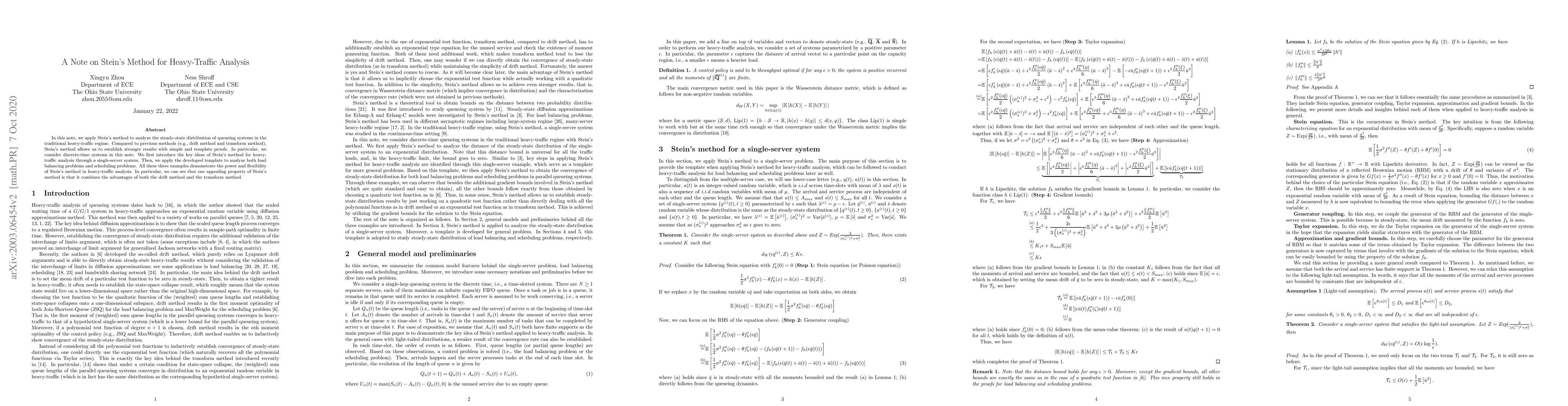 In this note, we apply Stein's method to analyze the steady-state distribution of queueing systems in the traditional heavy-traffic regime. Compared to previous methods (e.g., drift method and transform method), Stein's method allows us to establish stronger results with simple and template proofs. In particular, we consider discrete-time systems in this note. We first introduce the key ideas of Stein's method for heavy-traffic analysis through a single-server system. Then, we apply the developed template to analyze both load balancing problems and scheduling problems. All these three examples demonstrate the power and flexibility of Stein's method in heavy-traffic analysis. In particular, we can see that one appealing property of Stein's method is that it combines the advantages of both the drift method and the transform method.