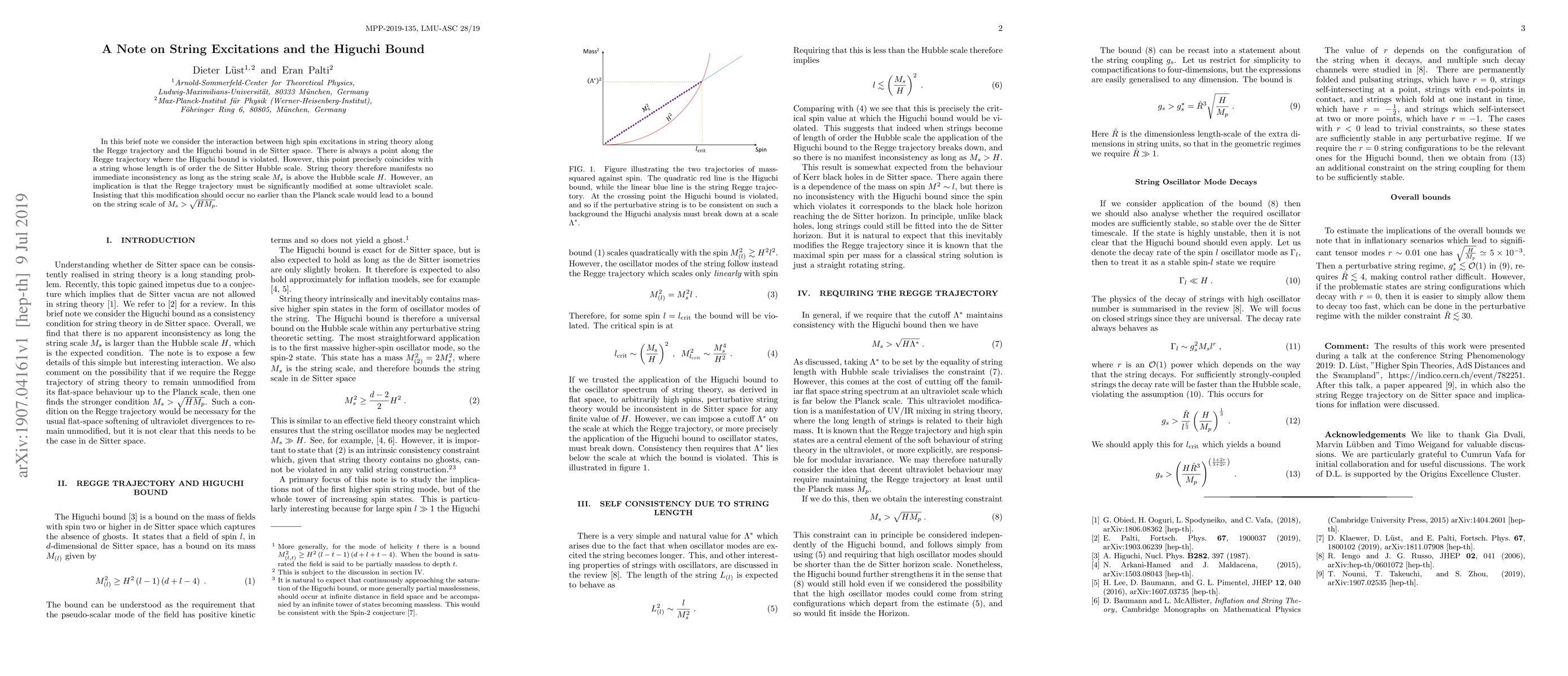 In this brief note we consider the interaction between high spin excitations in string theory along the Regge trajectory and the Higuchi bound in de Sitter space. There is always a point along the Regge trajectory where the Higuchi bound is violated. However, this point precisely coincides with a string whose length is of order the de Sitter Hubble scale. String theory therefore manifests no immediate inconsistency as long as the string scale $M_s$ is above the Hubble scale $H$. However, an implication is that the Regge trajectory must be significantly modified at some ultraviolet scale. Insisting that this modification should occur no earlier than the Planck scale would lead to a bound on the string scale of $M_s > \sqrt{H M_p}$.