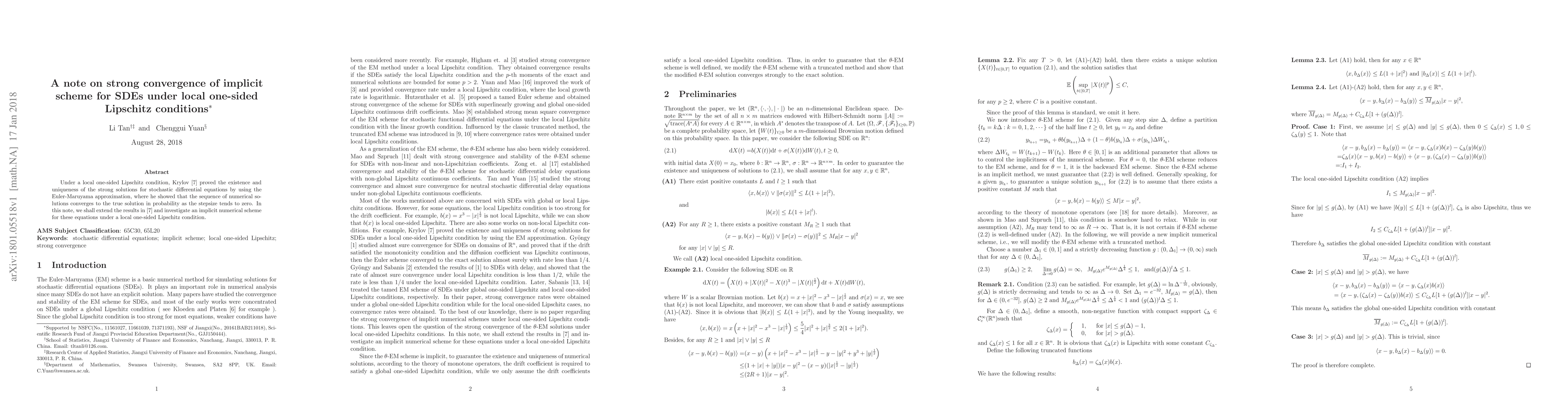 This paper extends Krylov's results on the strong convergence of stochastic differential equations (SDEs) under local one-sided Lipschitz conditions, focusing on an implicit numerical scheme rather than the traditional Euler-Maruyama method. It demonstrates the convergence of the implicit scheme to the true solution as the stepsize approaches zero.