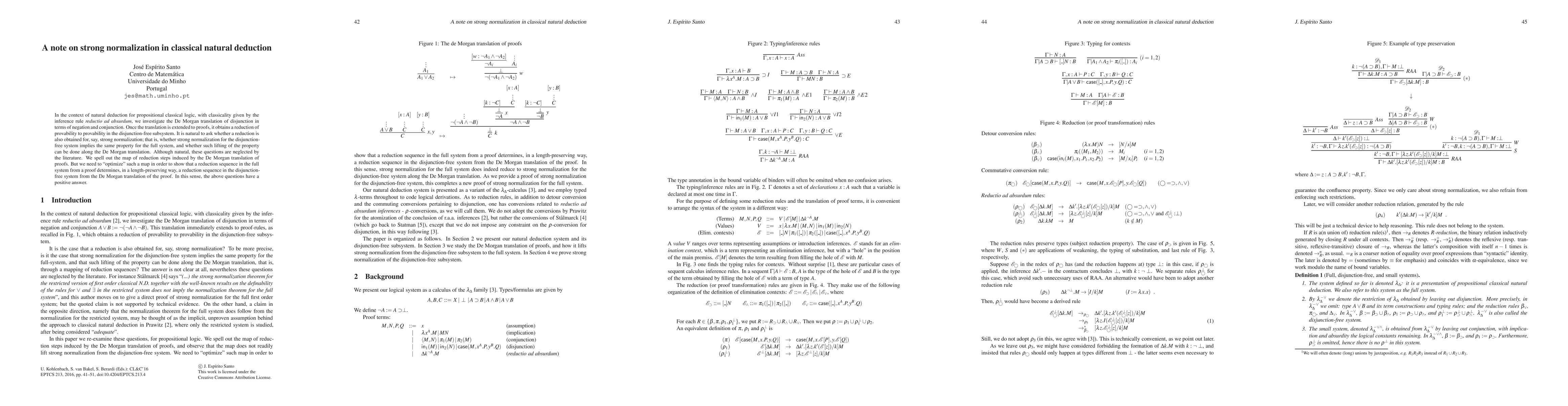 In the context of natural deduction for propositional classical logic, with classicality given by the inference rule reductio ad absurdum, we investigate the De Morgan translation of disjunction in terms of negation and conjunction. Once the translation is extended to proofs, it obtains a reduction of provability to provability in the disjunction-free subsystem. It is natural to ask whether a reduction is also obtained for, say, strong normalization; that is, whether strong normalization for the disjunction-free system implies the same property for the full system, and whether such lifting of the property can be done along the De Morgan translation. Although natural, these questions are neglected by the literature. We spell out the map of reduction steps induced by the De Morgan translation of proofs. But we need to "optimize" such a map in order to show that a reduction sequence in the full system from a proof determines, in a length-preserving way, a reduction sequence in the disjunction-free system from the De Morgan translation of the proof. In this sense, the above questions have a positive answer.