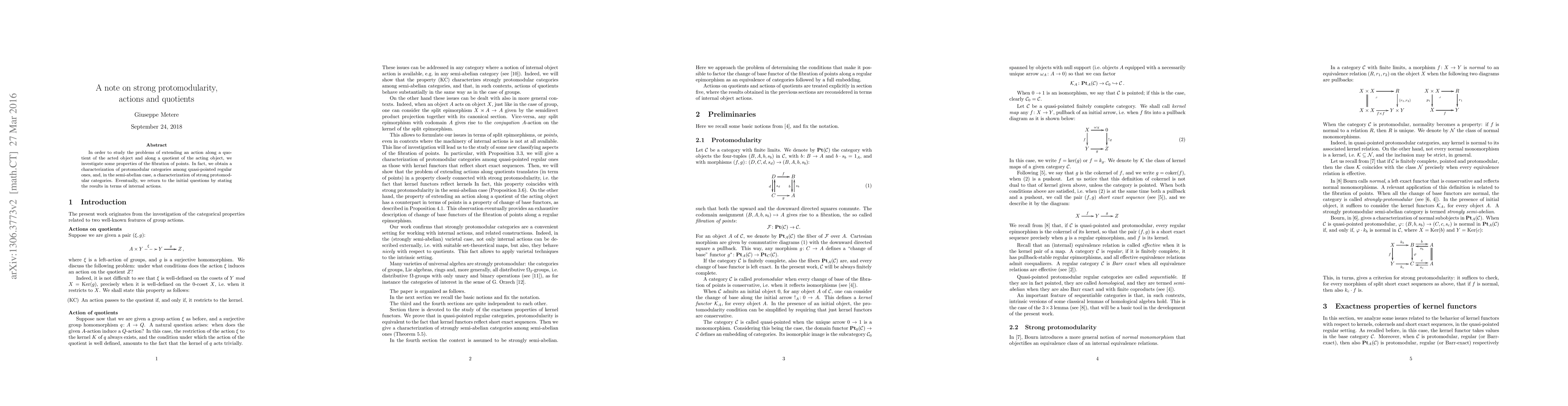 In order to study the problems of extending an action along a quotient of the acted object and along a quotient of the acting object, we investigate some properties of the fibration of points. In fact, we obtain a characterization of protomodular categories among quasi-pointed regular ones, and, in the semi-abelian case, a characterization of strong protomodular categories. Eventually, we return to the initial questions by stating the results in terms of internal actions.
