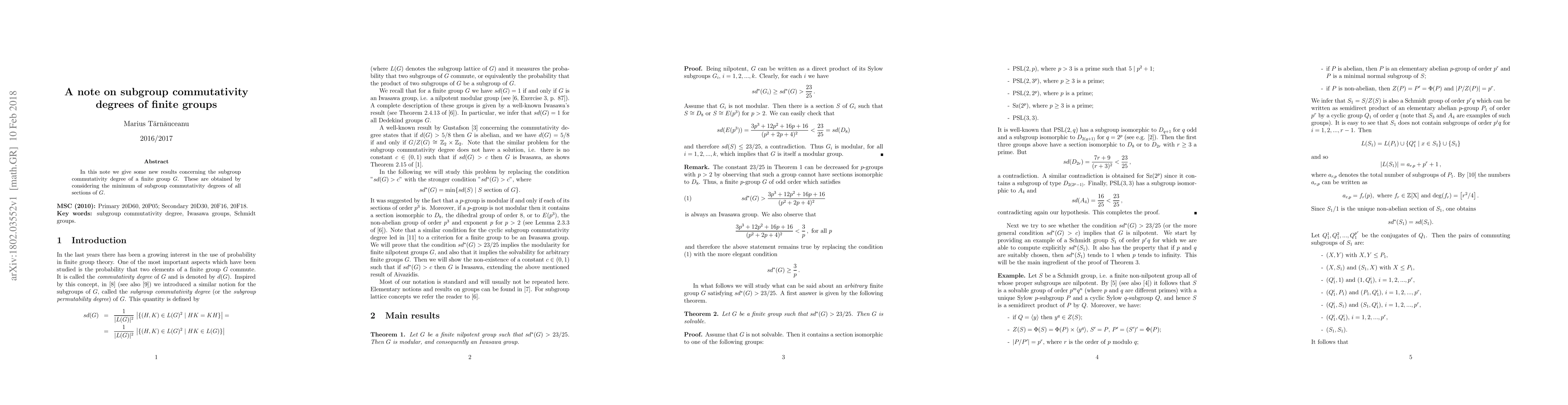 In this note we give some new results concerning the subgroup commutativity degree of a finite group $G$. These are obtained by considering the minimum of subgroup commutativity degrees of all sections of $G$.