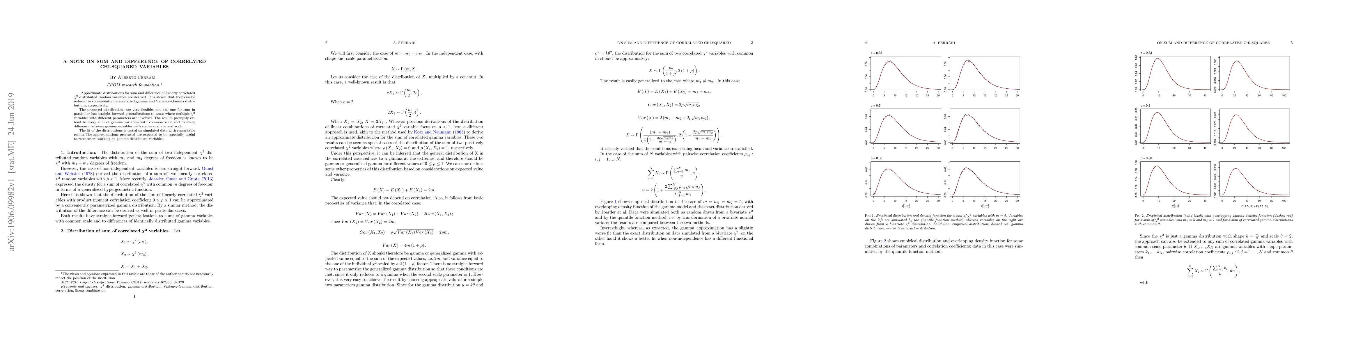 Approximate distributions for sum and difference of linearly correlated $\chi^{2}$ distributed random variables are derived. It is shown that they can be reduced to conveniently parametrized gamma and Variance-Gamma distributions, respectively. The proposed distributions are very flexible, and the one for sum in particular has straight-forward generalizations to cases where multiple $\chi^{2}$ variables with different parameters are involved. The results promptly extend to every sum of gamma variables with common scale and to every difference between gamma variables with common shape and scale. The fit of the distributions is tested on simulated data with remarkable results.The approximations presented are expected to be especially useful to researchers working on gamma-distributed variables.