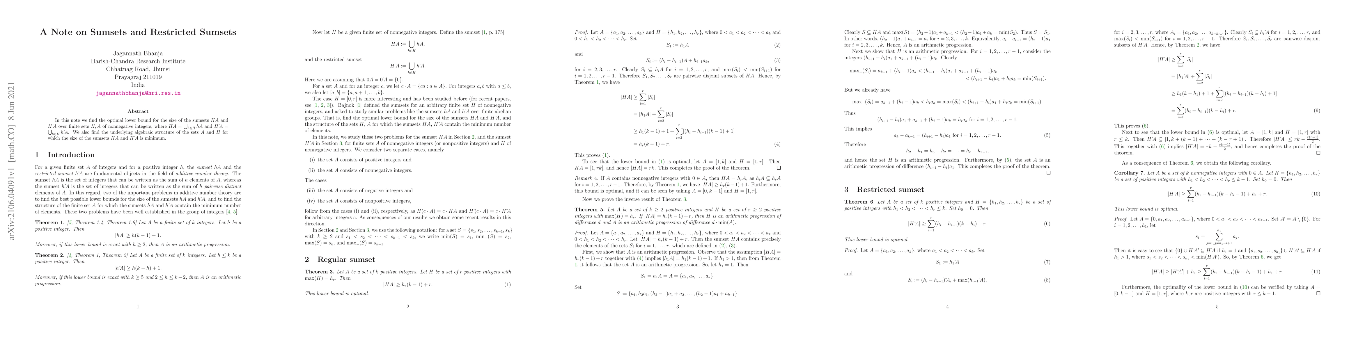 In this note we find the optimal lower bound for the size of the sumsets $HA$ and $H\,\hat{}A$ over finite sets $H, A$ of nonnegative integers, where $HA = \bigcup_{h\in H} hA$ and $H\,\hat{}A = \bigcup_{h\in H} h\,\hat{}A$. We also find the underlying algebraic structure of the sets $A$ and $H$ for which the size of the sumsets $HA$ and $H\,\hat{}A$ is minimum.