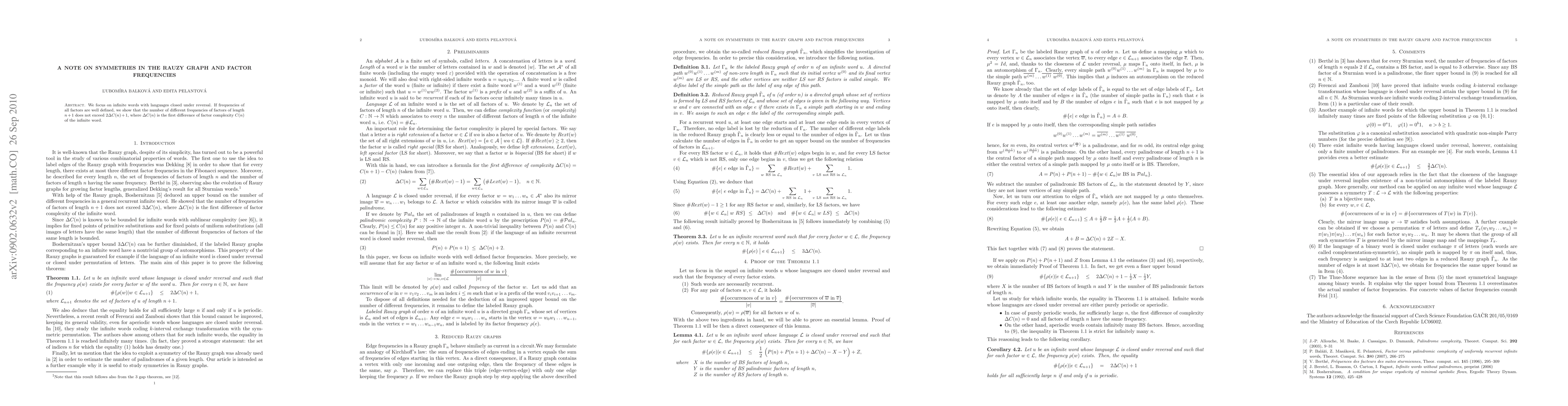 This research paper investigates symmetries in Rauzy graphs and their impact on factor frequencies in infinite words with reversal-closed languages. It shows that the number of different frequencies of factors of length n+1 does not exceed 2C(n+1)-2C(n)+1, with implications for understanding the structure of such words.