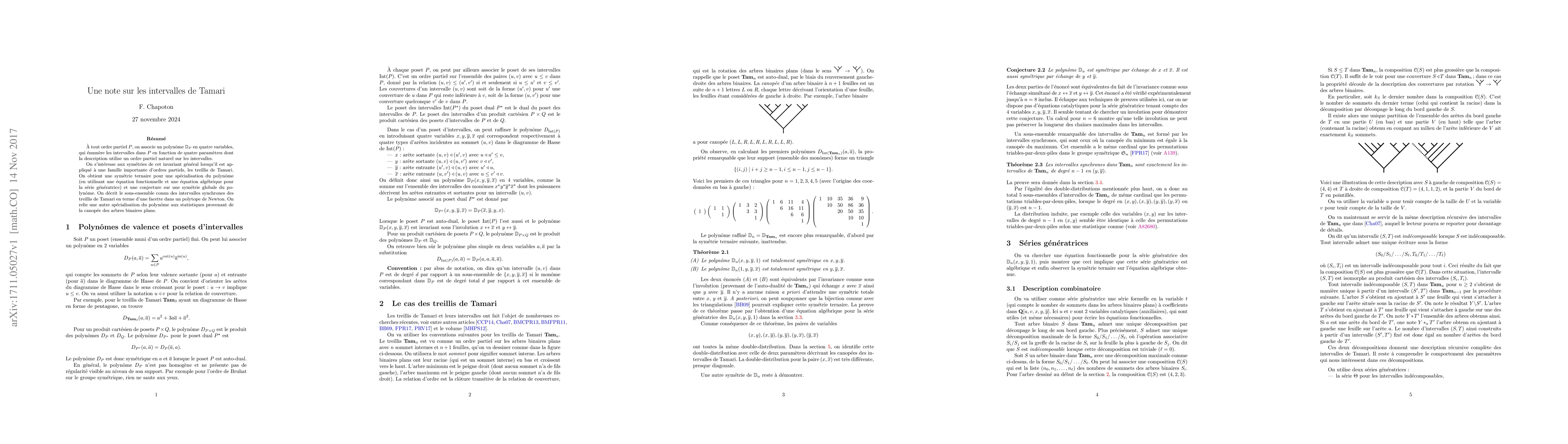 Researchers studied Tamari intervals, a concept in posets, and discovered a ternary symmetry in their polynomial representation. They also found connections to binary planar trees and conjectured another global symmetry.