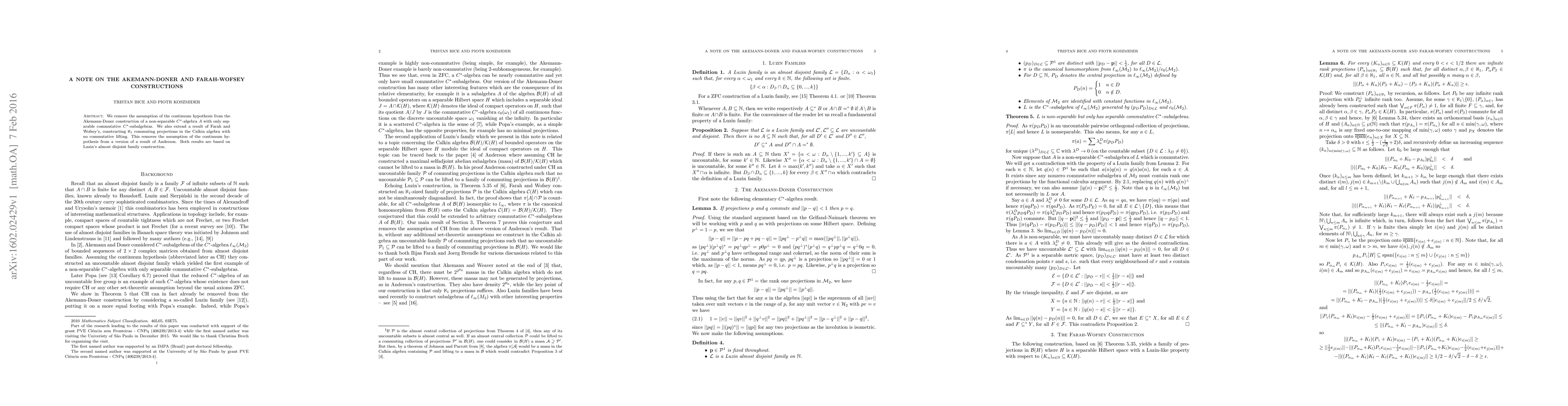 We remove the assumption of the continuum hypothesis from the Akemann-Doner construction of a non-separable $C^*$-algebra $A$ with only separable commutative $C^*$-subalgebras. We also extend a result of Farah and Wofsey's, constructing $\aleph_1$ commuting projections in the Calkin algebra with no commutative lifting. This removes the assumption of the continuum hypothesis from a version of a result of Anderson. Both results are based on Luzin's almost disjoint family construction.