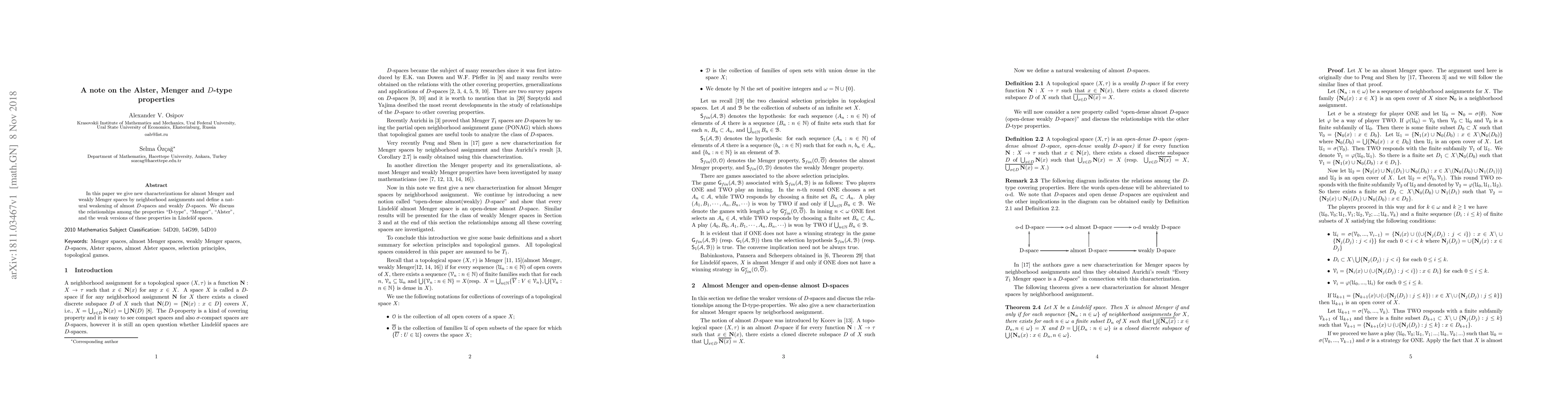 Summary: This paper introduces new characterizations for almost Menger and weakly Menger spaces using neighborhood assignments. It also defines a relaxed version of almost D-spaces and weakly D-spaces.