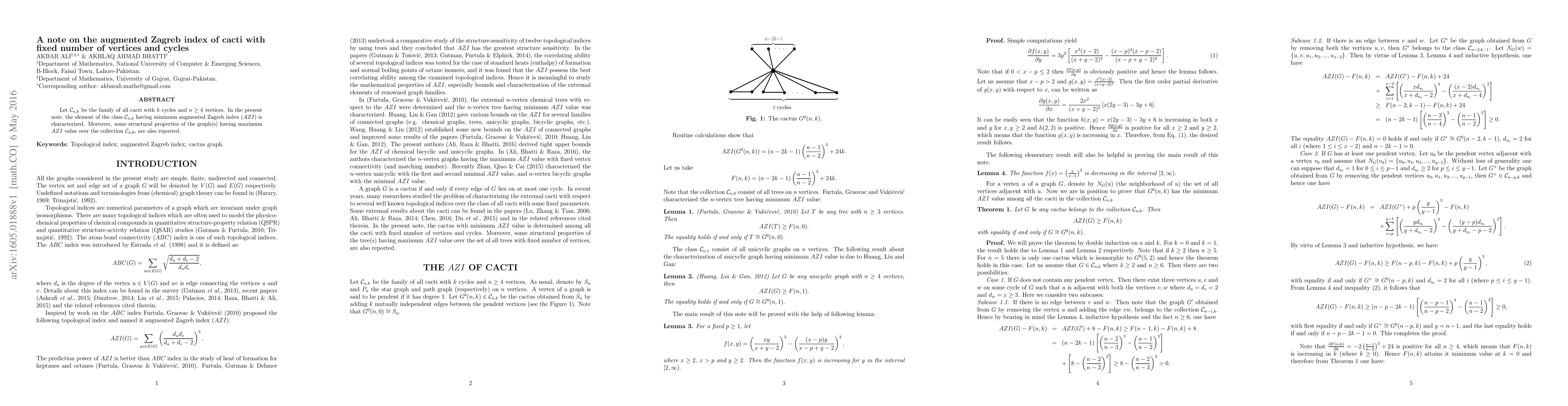 Let $\mathcal{C}_{n,k}$ be the family of all cacti with $k$ cycles and $n\geq4$ vertices. In the present note, the element of the class $\mathcal{C}_{n,k}$ having minimum augmented Zagreb index ($AZI$) is characterized. Moreover, some structural properties of the graph(s) having maximum $AZI$ value over the collection $\mathcal{C}_{n,0}$, are also reported.