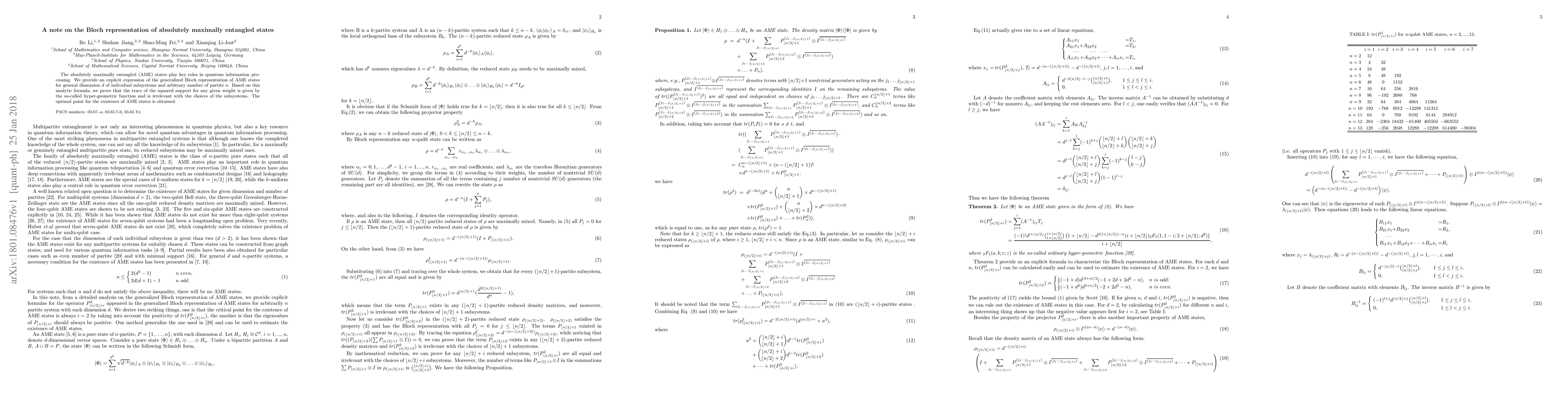 This paper presents an explicit generalized Bloch representation for absolutely maximally entangled states in quantum information processing, showing that the trace of the squared support for any weight is determined by a hyper-geometric function, independent of subsystem choices, and identifies the optimal conditions for their existence.