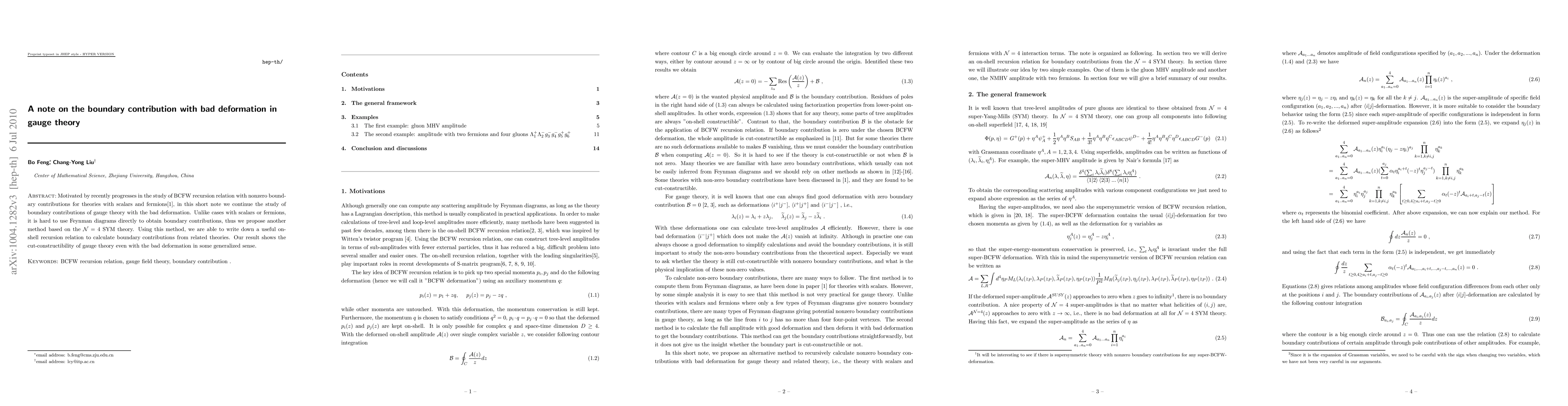 Motivated by recently progresses in the study of BCFW recursion relation with nonzero boundary contributions for theories with scalars and fermions\cite{Bofeng}, in this short note we continue the study of boundary contributions of gauge theory with the bad deformation. Unlike cases with scalars or fermions, it is hard to use Feynman diagrams directly to obtain boundary contributions, thus we propose another method based on the ${\cal N}=4$ SYM theory. Using this method, we are able to write down a useful on-shell recursion relation to calculate boundary contributions from related theories. Our result shows the cut-constructibility of gauge theory even with the bad deformation in some generalized sense.