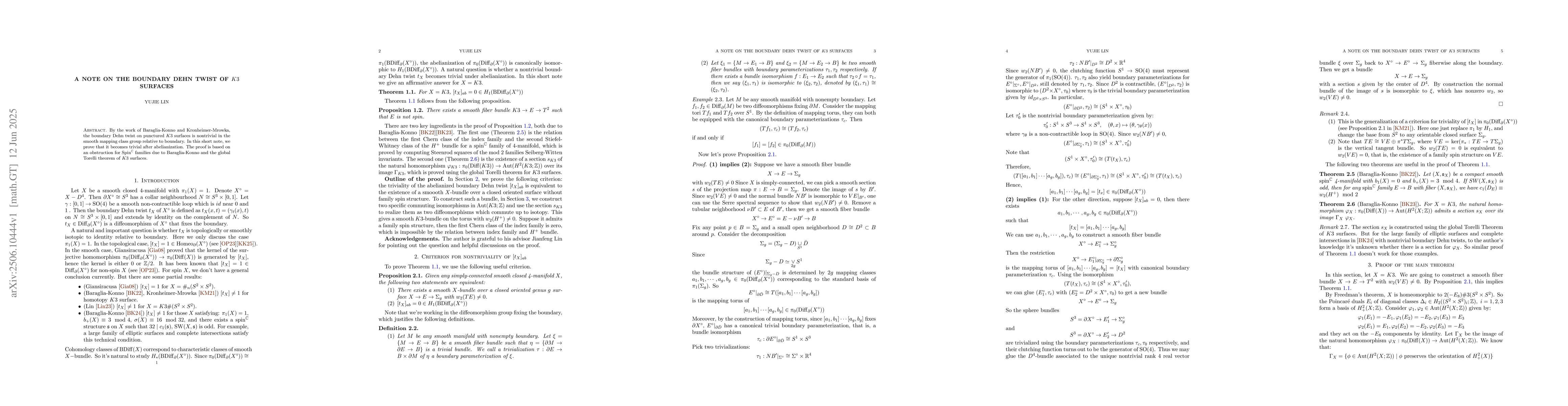 The paper introduces a criterion for nontriviality of the abelianized boundary Dehn twist and demonstrates its application to $K3$ surfaces, leveraging results from spin geometry and the global Torelli theorem.