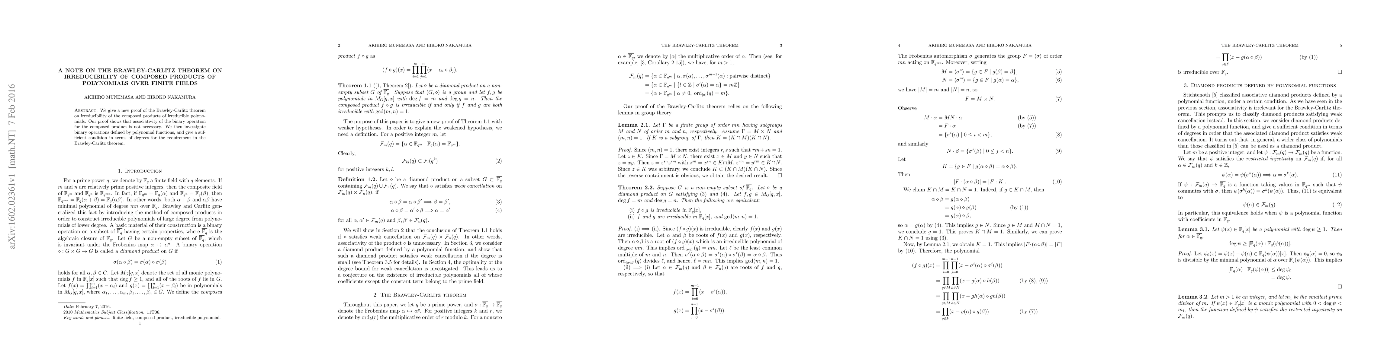 Researchers provide a new proof of the Brawley-Carlitz theorem on irreducibility of composed products of polynomials over finite fields, finding that associativity is not necessary.