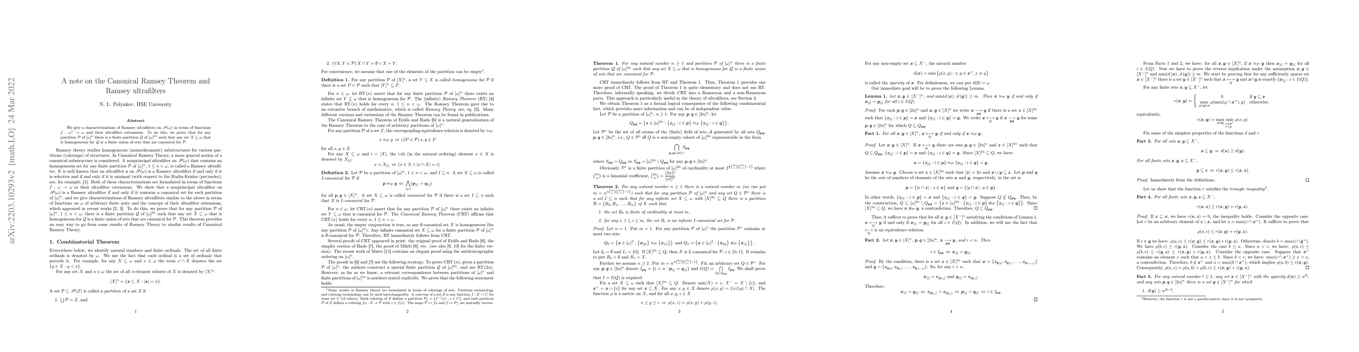 We give a characterizations of Ramsey ultrafilters on $\mathscr P(\omega)$ in terms of functions $f:\omega^n\to\omega$ and their ultrafilter extensions. To do this, we prove that for any partition $\mathcal P$ of $[\omega]^n$ there is a finite partition~$\mathcal Q$ of $[\omega]^{2n}$ such that any set $X\subseteq \omega$ that is homogeneous for $\mathcal Q$ is a finite union of sets that are canonical for $\mathcal P$.