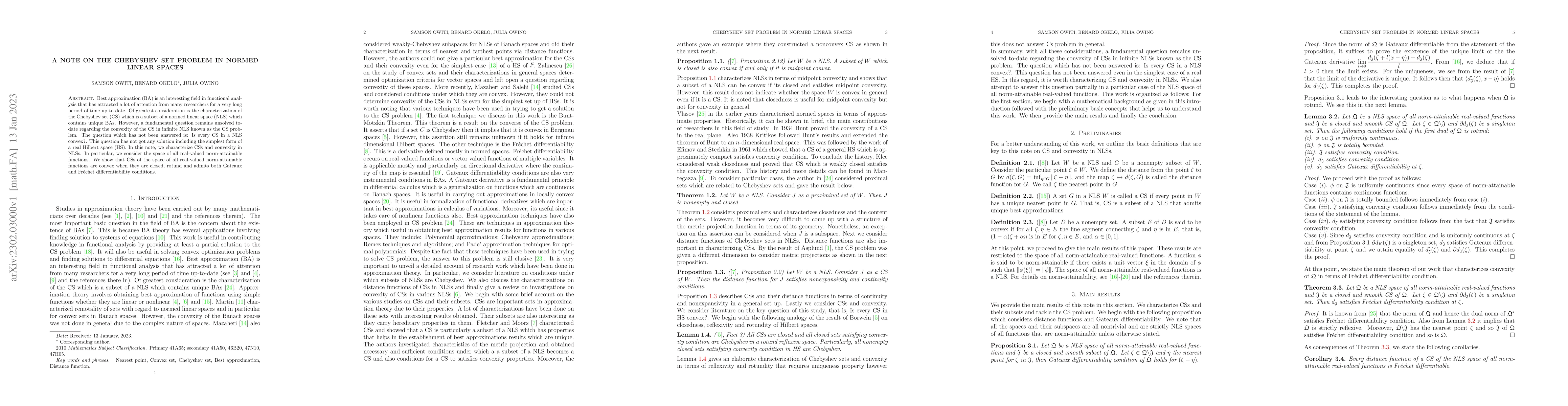 This paper addresses the longstanding Chebyshev set problem in normed linear spaces, focusing on the convexity of Chebyshev sets, which are subsets containing unique best approximations. The authors demonstrate that Chebyshev sets in the space of real-valued norm-attainable functions are convex under certain conditions, including closedness, rotundity, and differentiability.