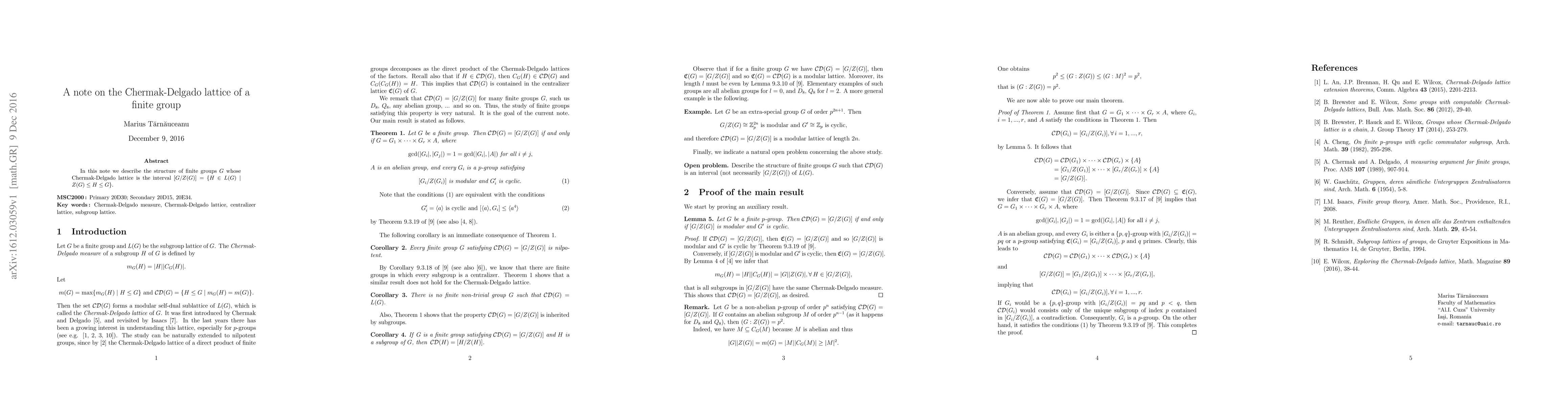 In this note we describe the structure of finite groups G whose Chermak-Delgado lattice is the interval [G/Z(G)] = {H \in L(G) \mid Z(G)\leq H\leq G}.