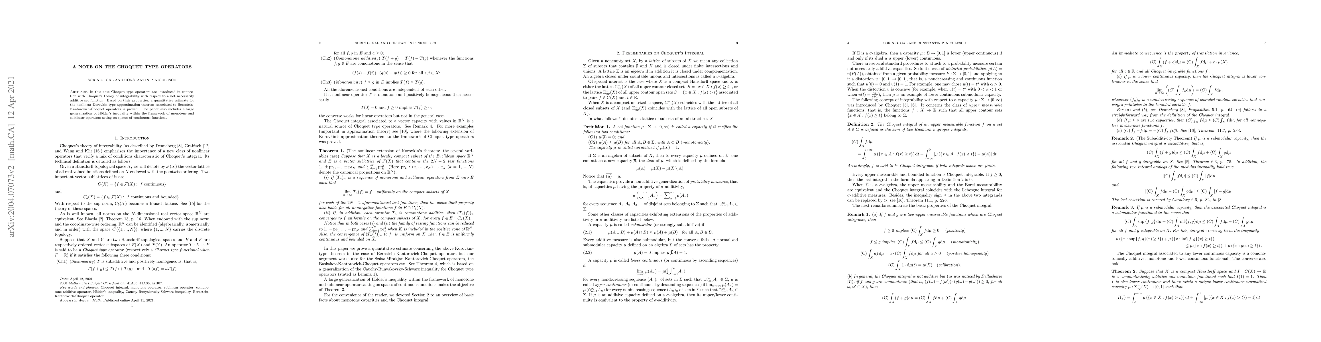 In this note the Choquet type operators are introduced, in connection to Choquet's theory of integrability with respect to a not necessarily additive set function. Based on their properties, a quantitative estimate for the nonlinear Korovkin type approximation theorem associated to Bernstein-Kantorovich-Choquet operators is proved. The paper also includes a large generalization of H\"{o}lder's inequality within the framework of monotone and sublinear operators acting on spaces of continuous functions.