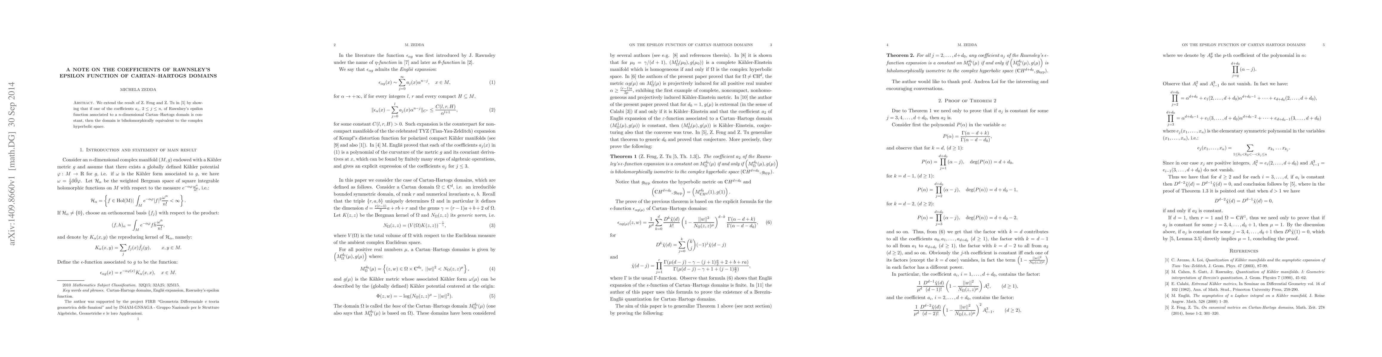 We extend a result of Z. Feng and Z. Tu by showing that if one of the coefficients $a_j$, $2\leq j\leq n$, of Rawnlsey's epsilon function associated to a $n$-dimensional Cartan-Hartogs domain is constant, then the domain is biholomorphically equivalent to the complex hyperbolic space.