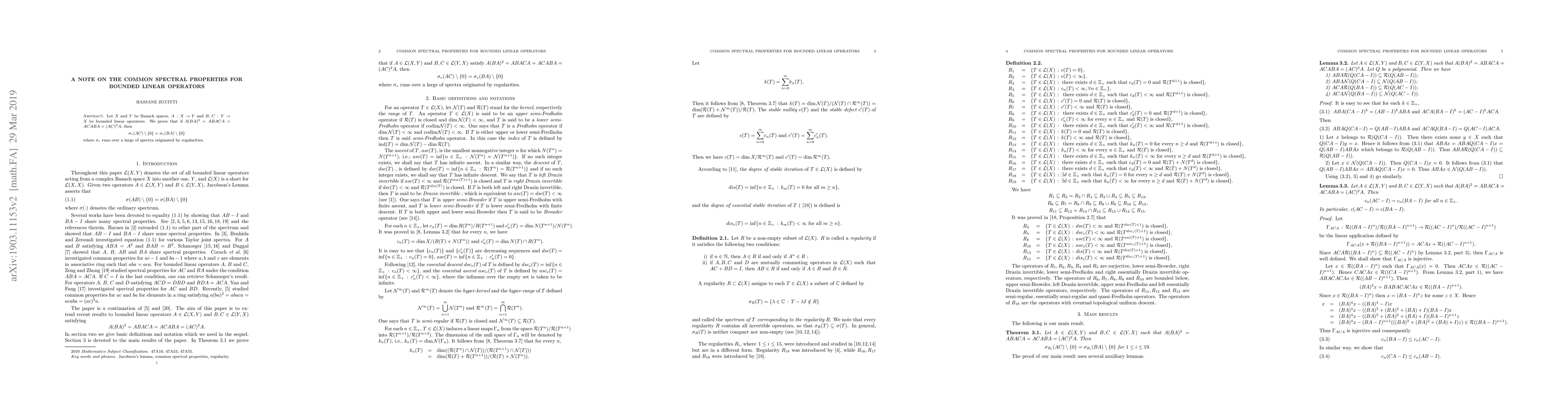 Let $X$ and $Y$ be Banach spaces, $A\,:\,X\rightarrow Y$ and $B,\,C\,:\,Y\rightarrow X$ be bounded linear operators. We prove that if $A(BA)^2=ABACA=ACABA=(AC)^2A,$ then $$\sigma_{*}(AC)\setminus\{0\}=\sigma_{*}(BA)\setminus\{0\}$$ where $\sigma_*$ runs over a large of spectra originated by regularities.