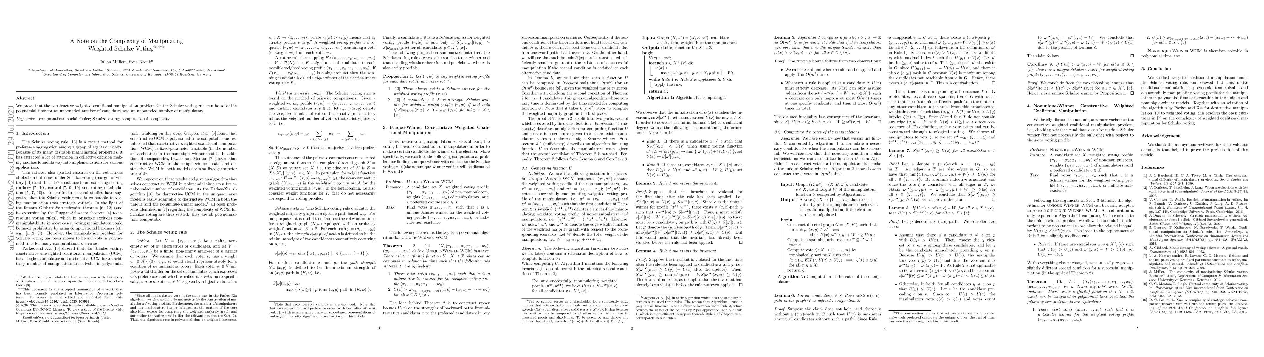 Summary: This paper demonstrates that the Schulze voting rule's constructive weighted coalitional manipulation problem can be resolved in polynomial time, regardless of the number of candidates and manipulators. The findings highlight the computational feasibility of manipulating this voting system.