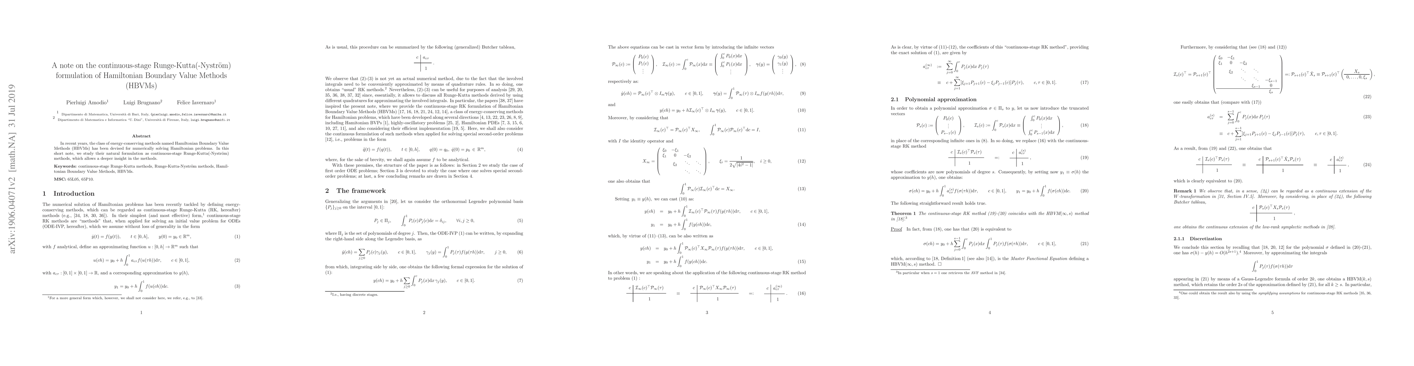 In recent years, the class of energy-conserving methods named Hamiltonian Boundary Value Methods (HBVMs) has been devised for numerically solving Hamiltonian problems. In this short note, we study their natural formulation as continuous-stage Runge-Kutta(-Nystr\"om) methods, which allows a deeper insight in the methods.