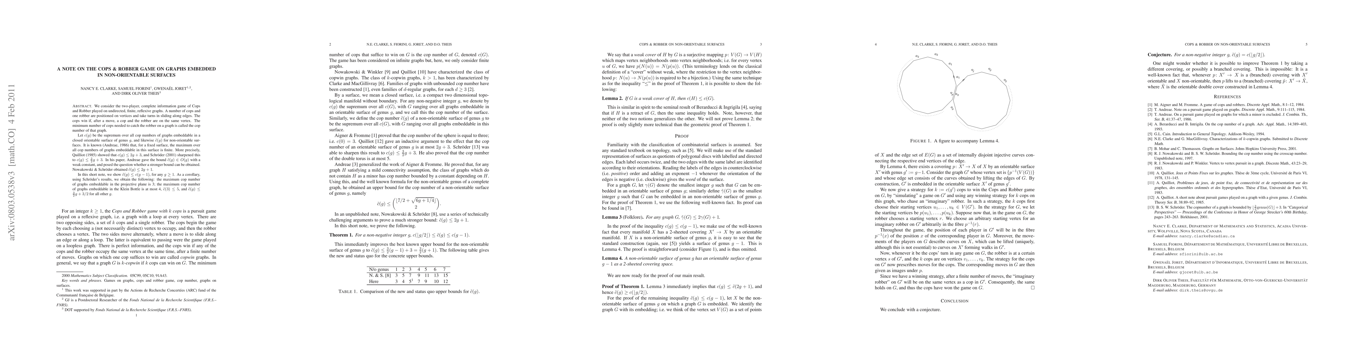 This research improves the bounds for non-orientable surfaces and provides new insights into the cop number problem.