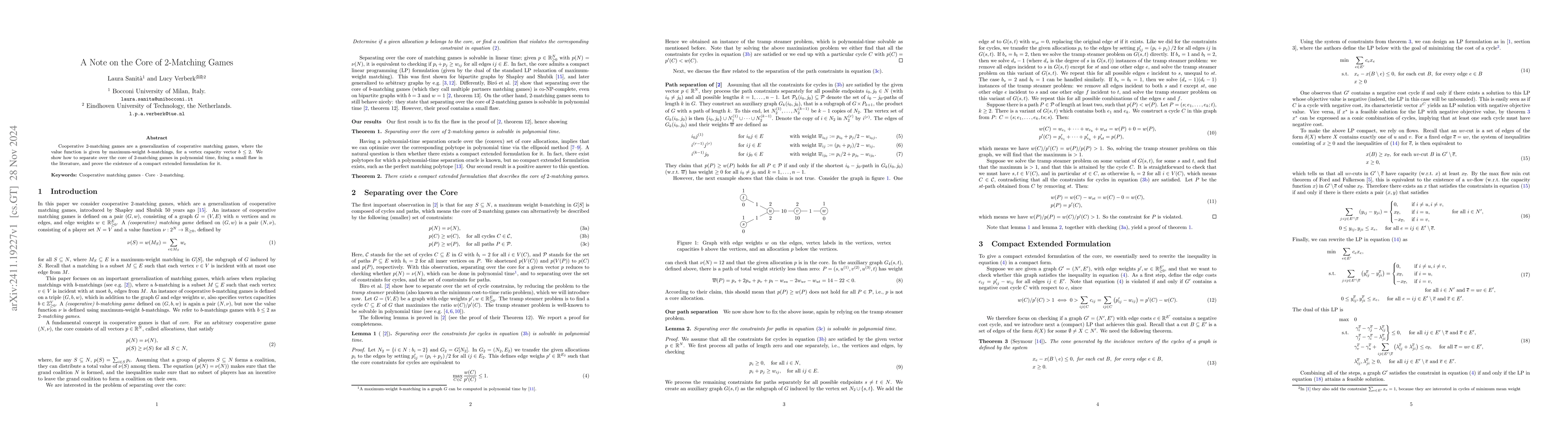 This paper addresses cooperative 2-matching games, presenting a polynomial-time method for separating over their core and correcting a previous flaw in the literature. It also proves the existence of a compact extended formulation for the game's core.
