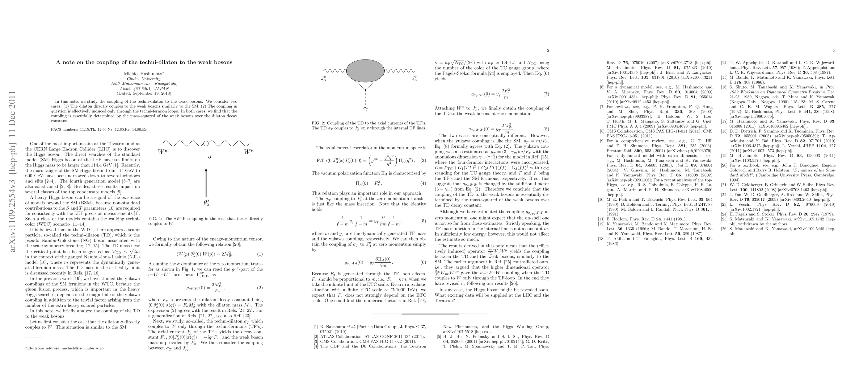 This paper investigates the coupling of the techni-dilaton to weak bosons, examining two scenarios: direct coupling akin to the Standard Model and induced coupling via techni-fermion loops. It concludes that the coupling strength is primarily determined by the ratio of the weak boson's mass-squared to the dilaton decay constant.
