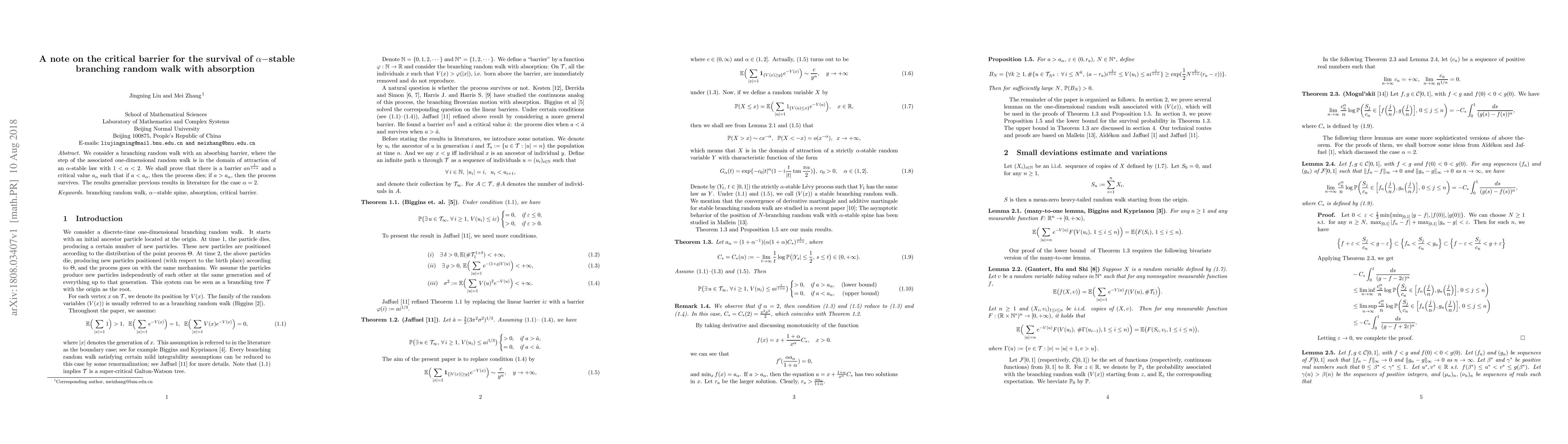 A branching random walk with an absorbing barrier can survive if a critical value $a_ heta$ is exceeded; otherwise, it dies, with the exact threshold depending on the parameter $ heta$. The results generalize to $ heta=2$.