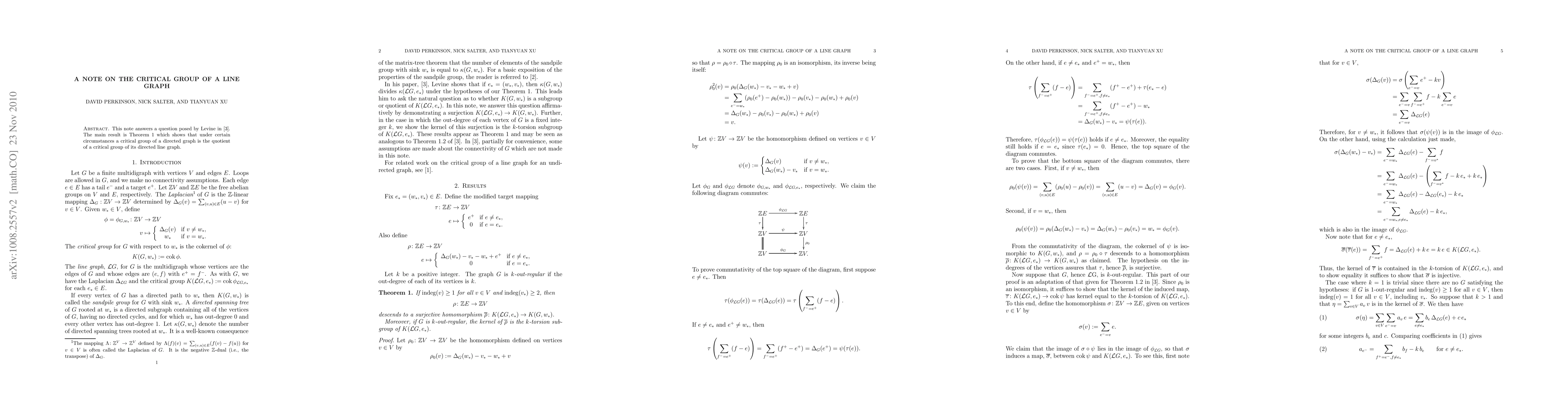Summary: This paper addresses Levine's query regarding the relationship between the critical groups of a directed graph and its directed line graph. The main result establishes that under specific conditions, the critical group of a directed graph is the quotient of the critical group of its directed line graph.