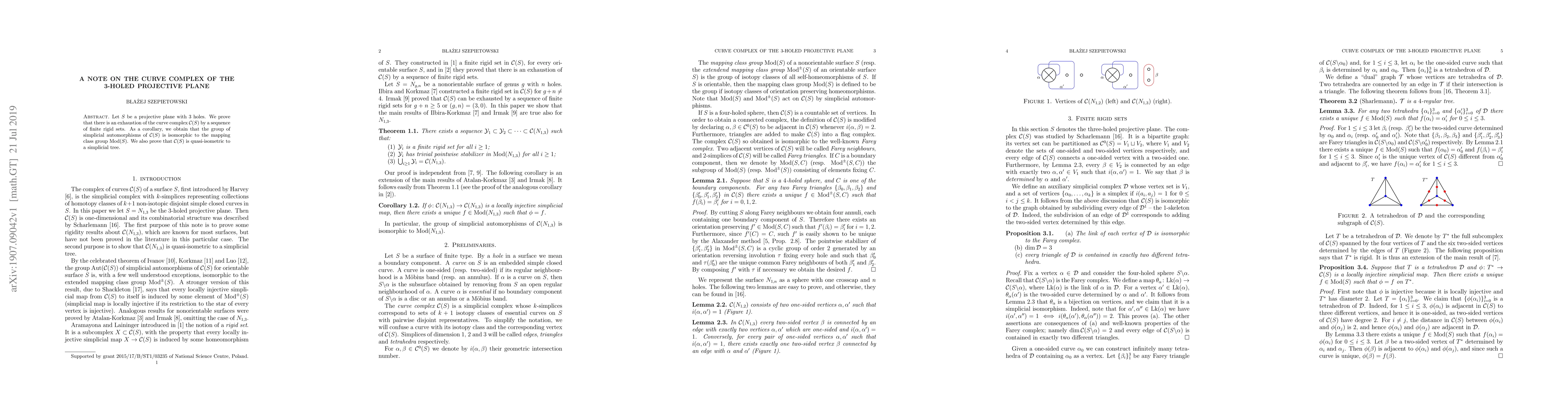 Researchers prove that a 3-holed projective plane's curve complex can be exhaustively approximated by finite rigid sets, leading to connections with the mapping class group and a quasi-isometric relationship to a simplicial tree.