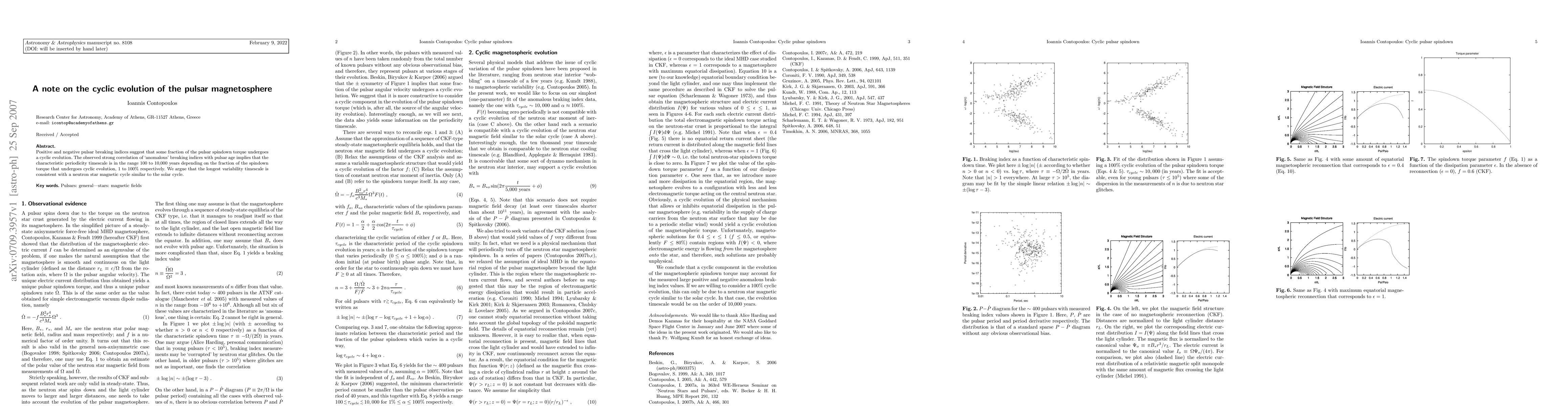 This paper explores the cyclic evolution of pulsar magnetospheres, suggesting that a portion of the pulsar spindown torque exhibits periodic changes, with a characteristic timescale ranging from 100 to 10,000 years, akin to a neutron star magnetic cycle similar to the solar cycle. The observed correlation with pulsar age supports this cyclic behavior.