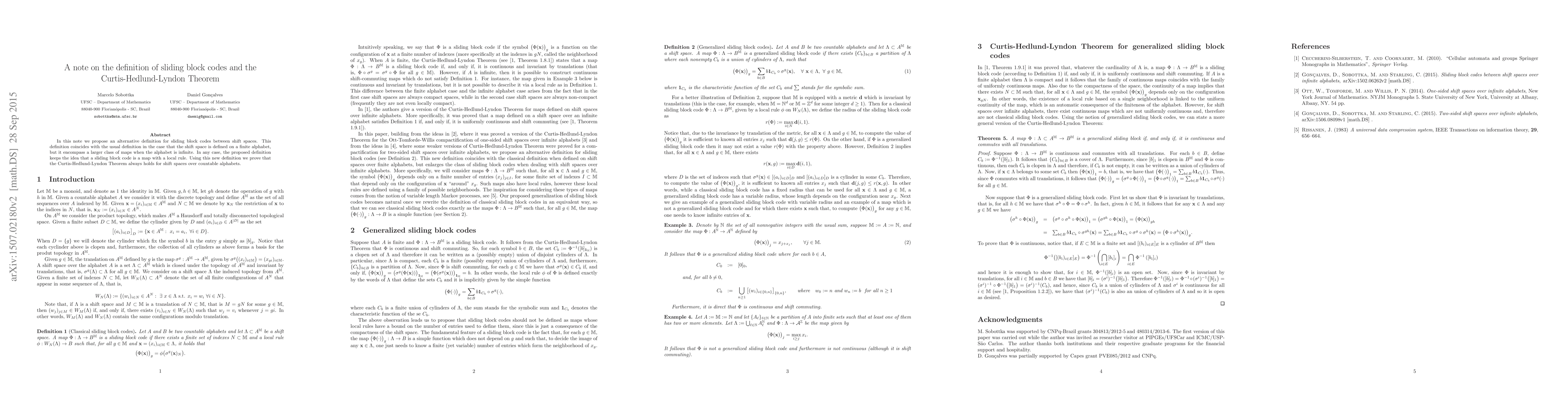 Summary: This paper introduces an alternative definition for sliding block codes that extends beyond finite alphabets, proving that the Curtis-Hedlund-Lyndon Theorem applies to shift spaces with countable alphabets while maintaining the concept of local rules.