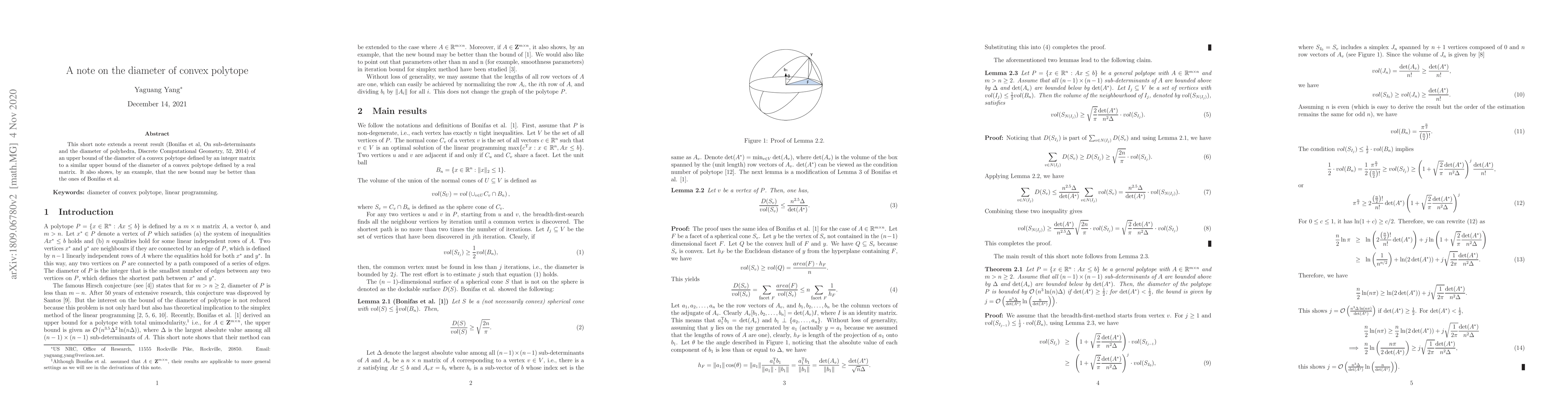 This short note extends a recent result (Bonifas et al, On sub-determinants and the diameter of polyhedra, Discrete Computational Geometry, 52, 2014) of an upper bound of the diameter of a convex polytope defined by an integer matrix to a similar upper bound of the diameter of a convex polytope defined by a real matrix. It also shows, by an example, that the new bound may be better than the ones of Bonifas et al.