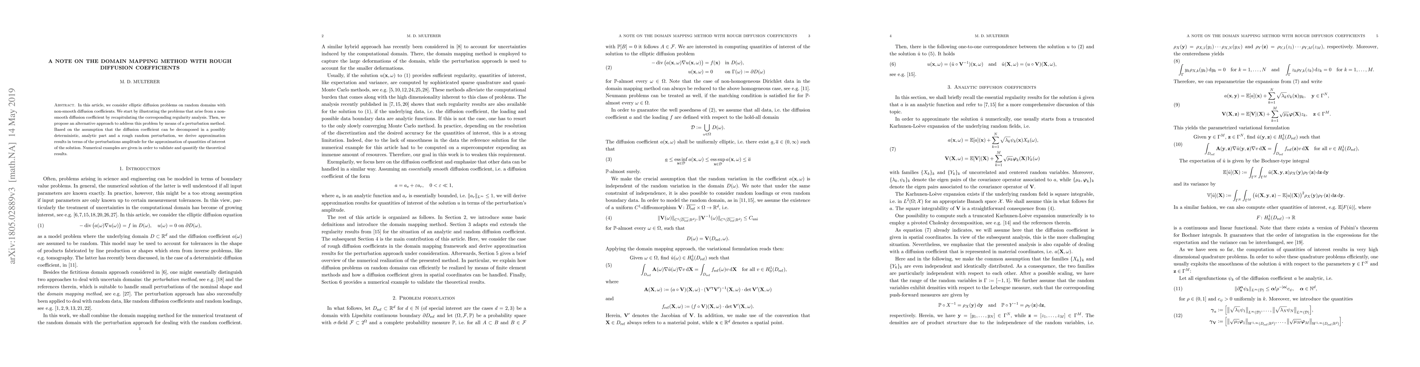 In this article, we consider elliptic diffusion problems on random domains with non-smooth diffusion coefficients. We start by illustrating the problems that arise from a non-smooth diffusion coefficient by recapitulating the corresponding regularity analysis. Then, we propose an alternative approach to address this problem by means of a perturbation method. Based on the assumption that the diffusion coefficient can be decomposed in a possibly deterministic, analytic part and a rough random perturbation, we derive approximation results in terms of the perturbations amplitude for the approximation of quantities of interest of the solution. Numerical examples are given in order to validate and quantify the theoretical results.