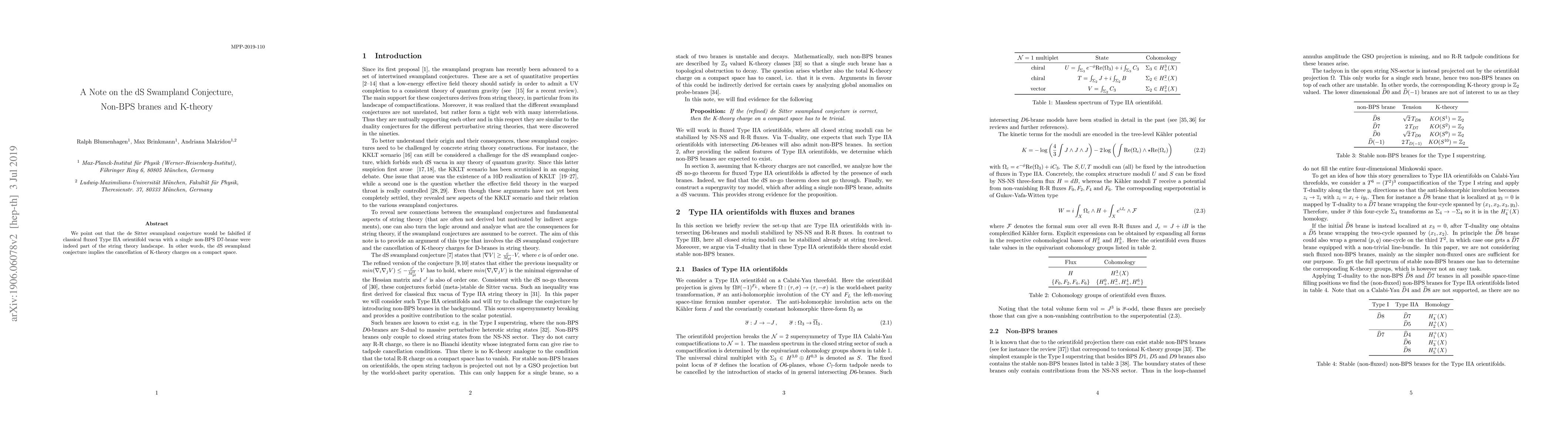 Summary: The paper argues that the dS swampland conjecture would be contradicted if certain Type IIA orientifold vacua with a single non-BPS D7-brane exist in the string theory landscape, thereby necessitating the cancellation of K-theory charges to uphold the conjecture.