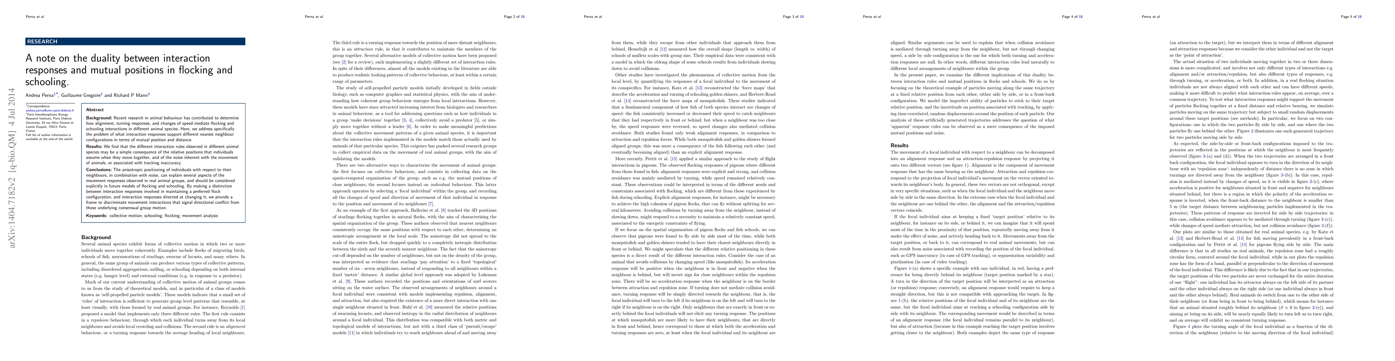 Background: Recent research in animal behaviour has contributed to determine how alignment, turning responses, and changes of speed mediate flocking and schooling interactions in different animal species. Here, we address specifically the problem of what interaction responses support different nearest neighbour configurations in terms of mutual position and distance. Results: We find that the different interaction rules observed in different animal species may be a simple consequence of the relative positions that individuals assume when they move together, and of the noise inherent with the movement of animals, or associated with tracking inaccuracy. Conclusions: The anisotropic positioning of individuals with respect to their neighbours, in combination with noise, can explain several aspects of the movement responses observed in real animal groups, and should be considered explicitly in future models of flocking and schooling. By making a distinction between interaction responses involved in maintaining a preferred flock configuration, and interaction responses directed at changing it, we provide a frame to discriminate movement interactions that signal directional conflict from those underlying consensual group motion.