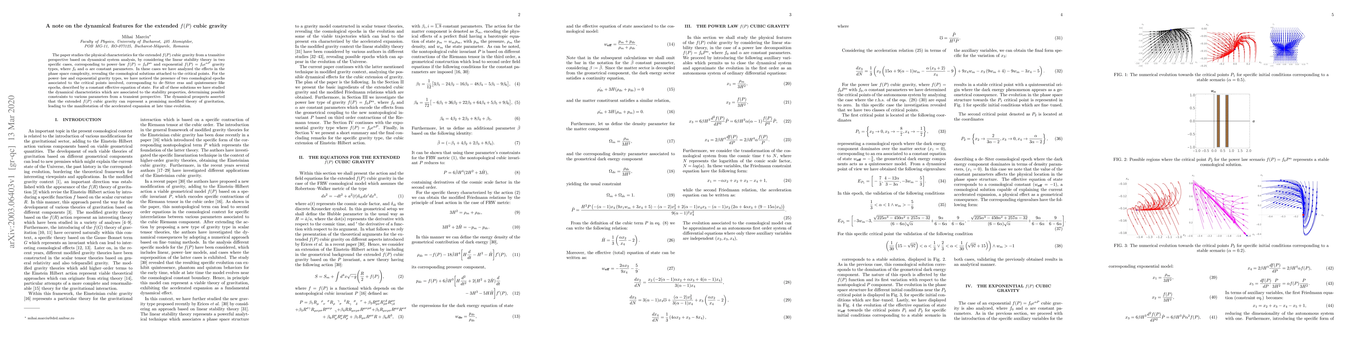 The paper studies the physical characteristics for the extended $f(P)$ cubic gravity from a transitive perspective based on dynamical system analysis, by considering the linear stability theory in two specific cases, corresponding to power-law $f(P)=f_0 P^{\alpha}$ and exponential $f(P)=f_0 e^{\alpha P}$ gravity types, where $f_0$ and $\alpha$ are constant parameters. In these cases we have analyzed the effects in the phase space complexity, revealing the cosmological solutions attached to the critical points. For the power-law and exponential gravity types, we have noticed the presence of two cosmological epochs associated to the critical points involved, corresponding to de-Sitter eras and quintessence-like epochs, described by a constant effective equation of state. For all of these solutions we have studied the dynamical characteristics which are associated to the stability properties, determining possible constraints to various parameters from a transient perspective. The dynamical prospects asserted that the extended $f(P)$ cubic gravity can represent a promising modified theory of gravitation, leading to the manifestation of the accelerated expansion at late time evolution.