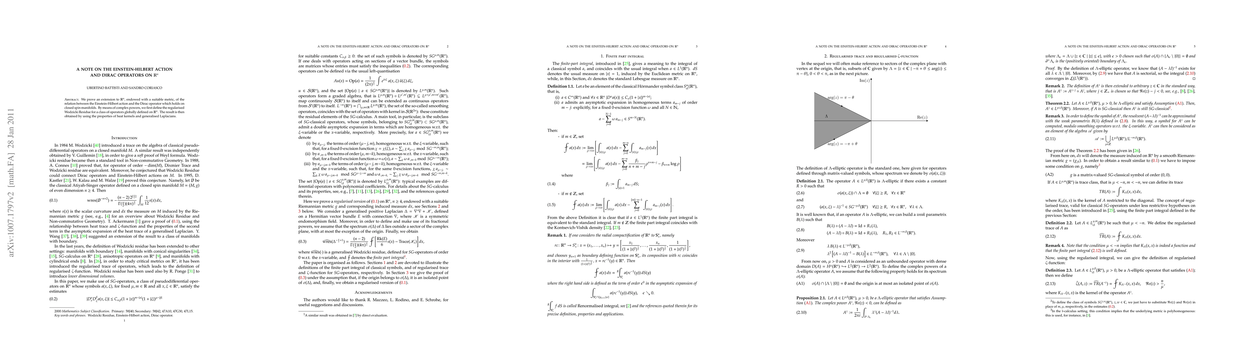 Researchers extend the relationship between Einstein-Hilbert action and Dirac operator to R^n, using complex powers and heat kernels to prove a key result.