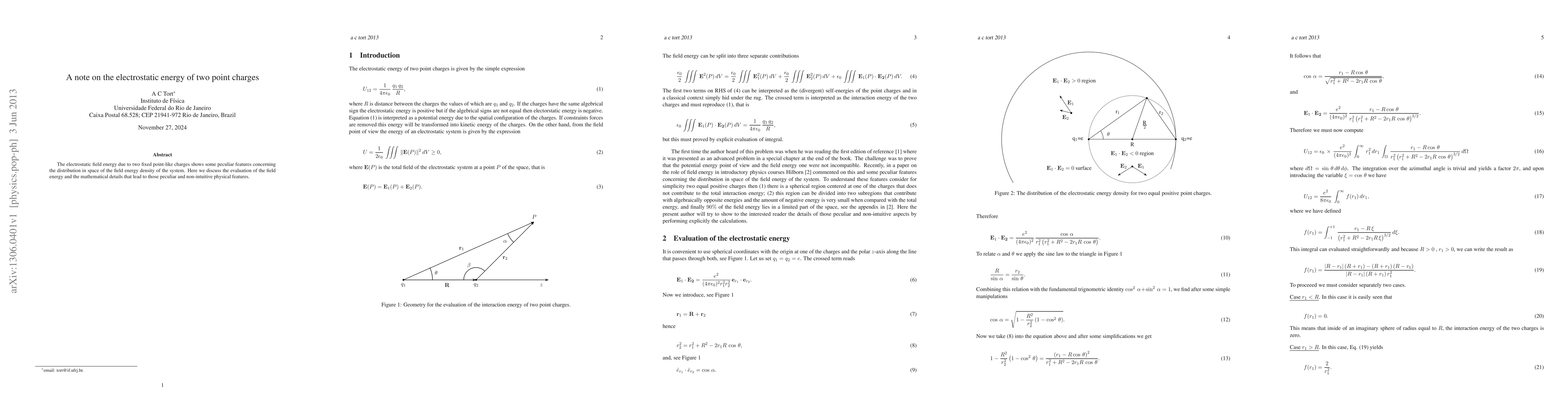 Researchers investigated the electrostatic field energy of two fixed point charges, revealing non-intuitive physical features in its distribution. They analyzed mathematical details to understand these peculiarities.