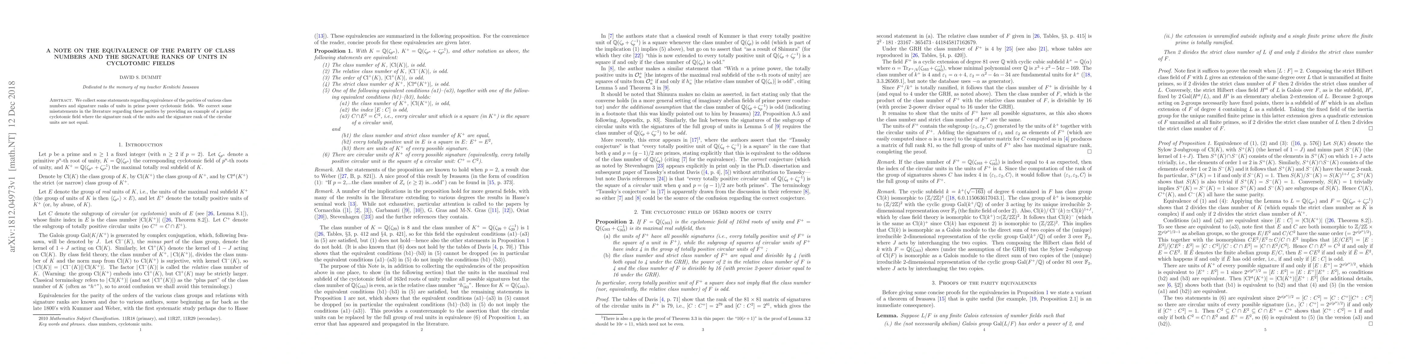 This paper examines the equivalence of the parities of class numbers and signature ranks of units in prime power cyclotomic fields, correcting previous misstatements by presenting a counterexample where the signature ranks differ.