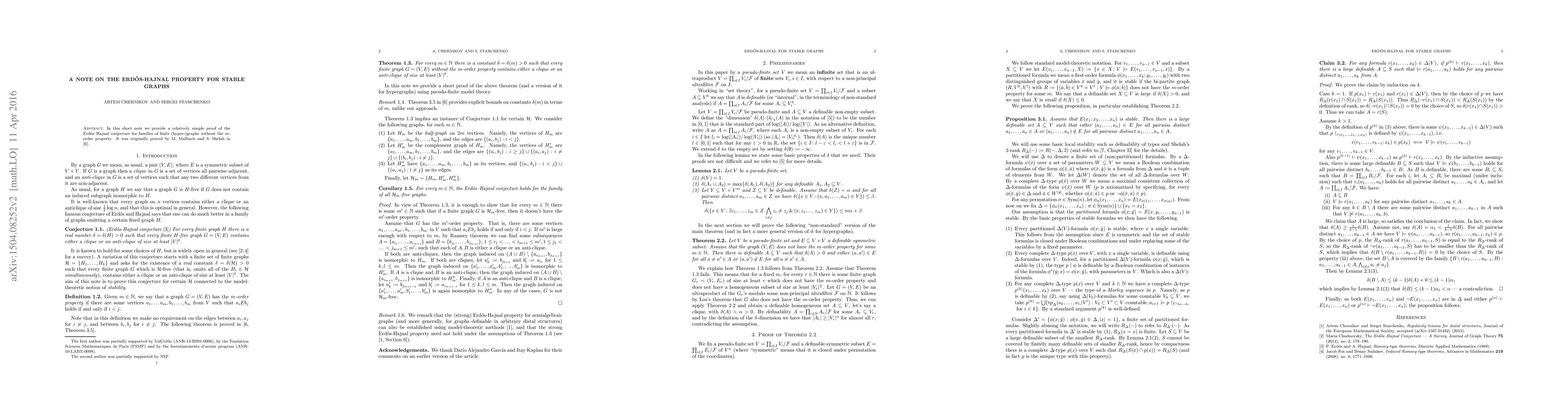 This paper offers a straightforward proof of the Erdős-Hajnal conjecture for stable graph families lacking the $k$-order property, extending the work of Malliaris and Shelah on regularity lemmas for stable graphs. The authors simplify the original proof by Malliaris and Shelah published in 2014.