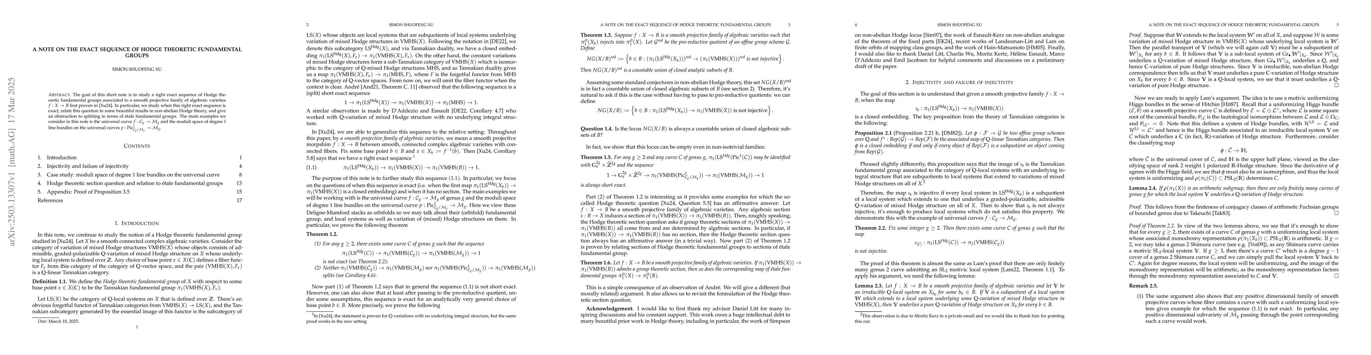 The paper introduces a detailed analysis of the exactness conditions for a right exact sequence of Hodge-theoretic fundamental groups, linking it to étale fundamental groups and non-abelian Hodge theory.