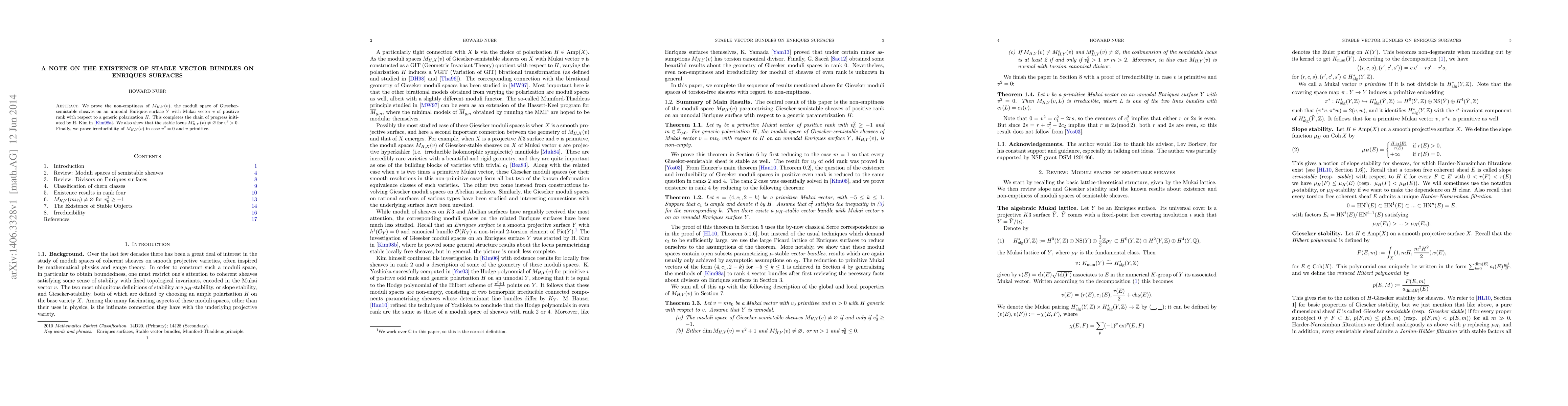 We prove the non-emptiness of $M_{H,Y}(v)$, the moduli space of Gieseker-semistable sheaves on an unnodal Enriques surface $Y$ with Mukai vector $v$ of positive rank with respect to a generic polarization $H$. This completes the chain of progress initiated by H. Kim in \cite{Kim98}. We also show that the stable locus $M^s_{H,Y}(v)\neq\varnothing$ for $v^2>0$. Finally, we prove irreducibility of $M_{H,Y}(v)$ in case $v^2=0$ and $v$ primitive.