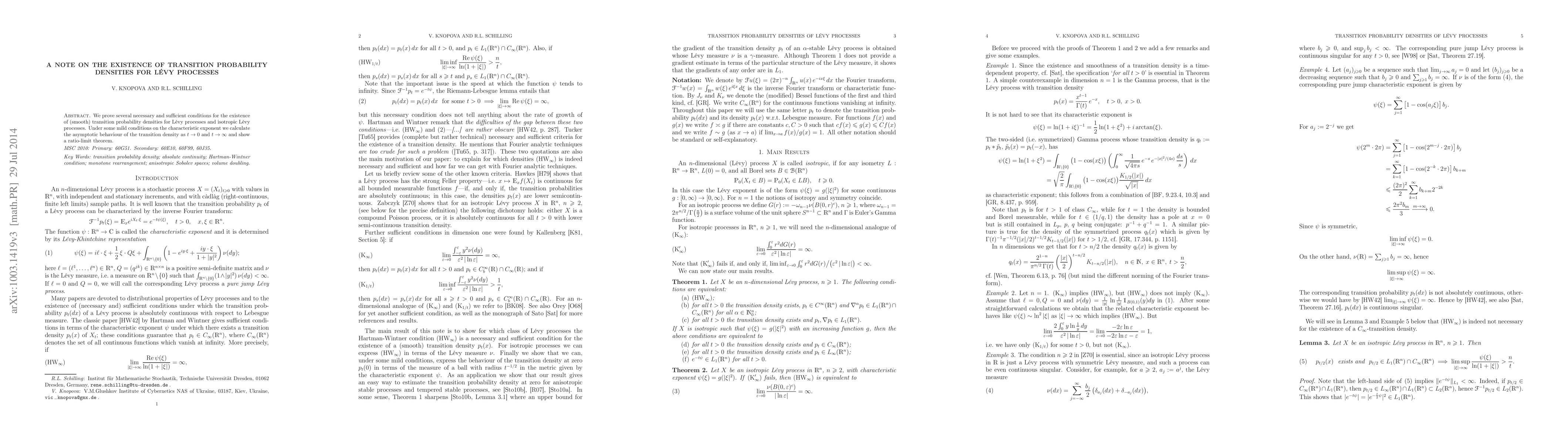 This paper establishes necessary and sufficient conditions for the existence of smooth transition probability densities in Lévy and isotropic Lévy processes. It also investigates the asymptotic behavior of these densities and proves a ratio-limit theorem under mild conditions on the characteristic exponent.