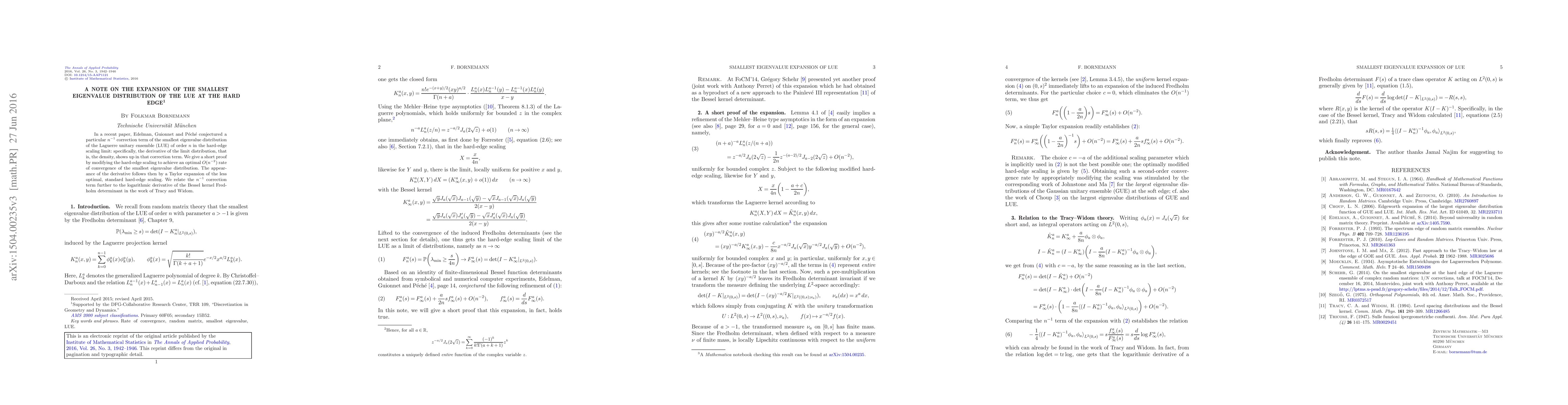 In a recent paper, Edelman, Guionnet and P\'{e}ch\'{e} conjectured a particular $n^{-1}$ correction term of the smallest eigenvalue distribution of the Laguerre unitary ensemble (LUE) of order $n$ in the hard-edge scaling limit: specifically, the derivative of the limit distribution, that is, the density, shows up in that correction term. We give a short proof by modifying the hard-edge scaling to achieve an optimal $O(n^{-2})$ rate of convergence of the smallest eigenvalue distribution. The appearance of the derivative follows then by a Taylor expansion of the less optimal, standard hard-edge scaling. We relate the $n^{-1}$ correction term further to the logarithmic derivative of the Bessel kernel Fredholm determinant in the work of Tracy and Widom.