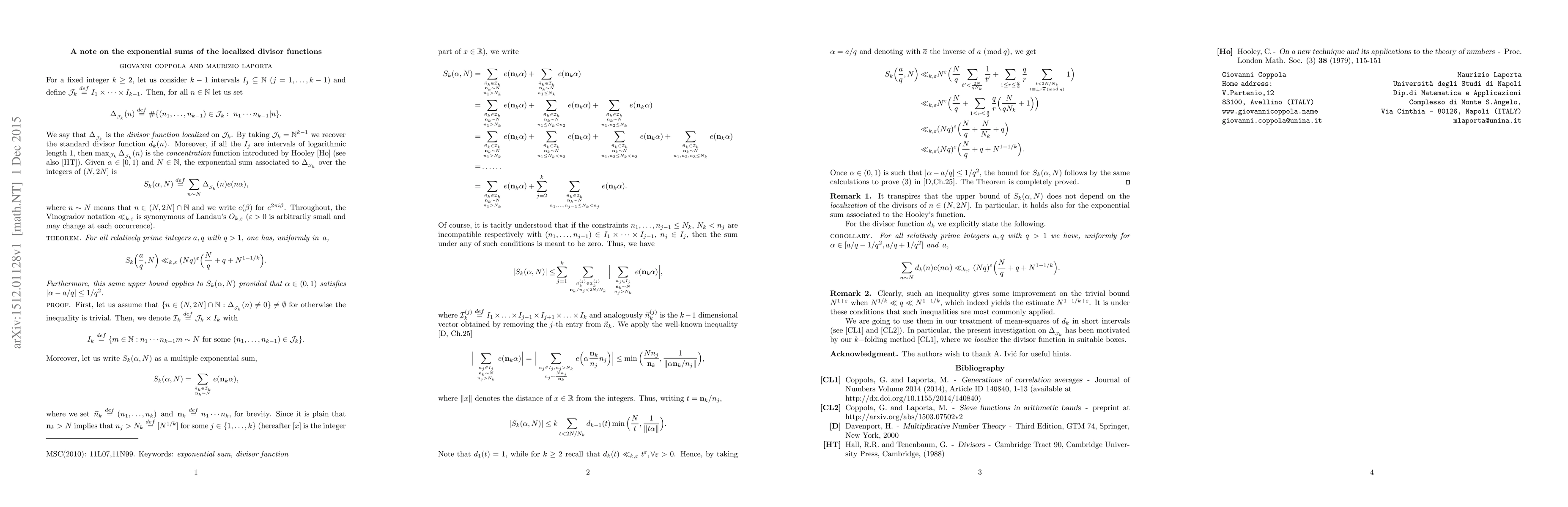 This paper provides an upper bound for the exponential sum related to a localized $k$-divisor function, which counts the number of ways to express a positive integer as a product of $k$ integers within a specified interval. The result also offers an estimate for the exponential sum of the $k$-divisor function $d_k(n)$.