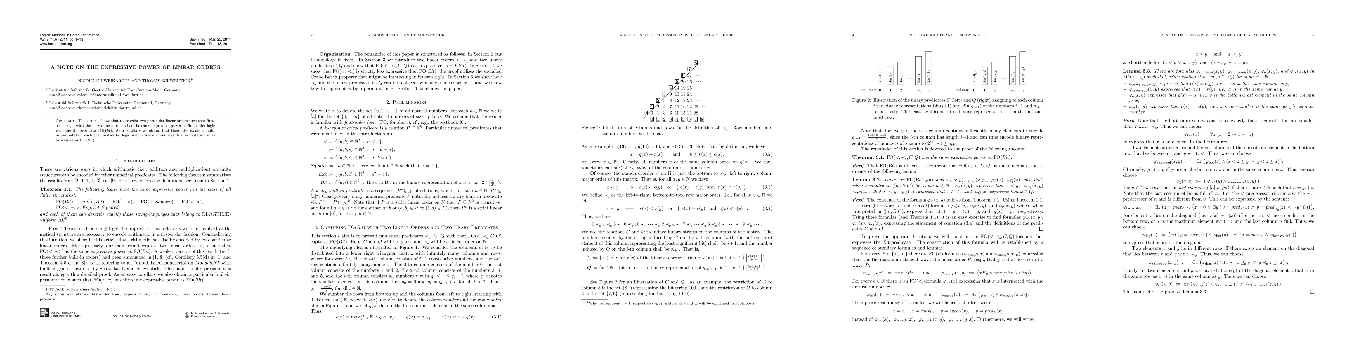 This paper demonstrates that first-order logic with specific linear orders matches the expressive power of first-order logic with the Bit-predicate, and also shows that a linear order combined with a built-in permutation achieves the same expressive capacity.