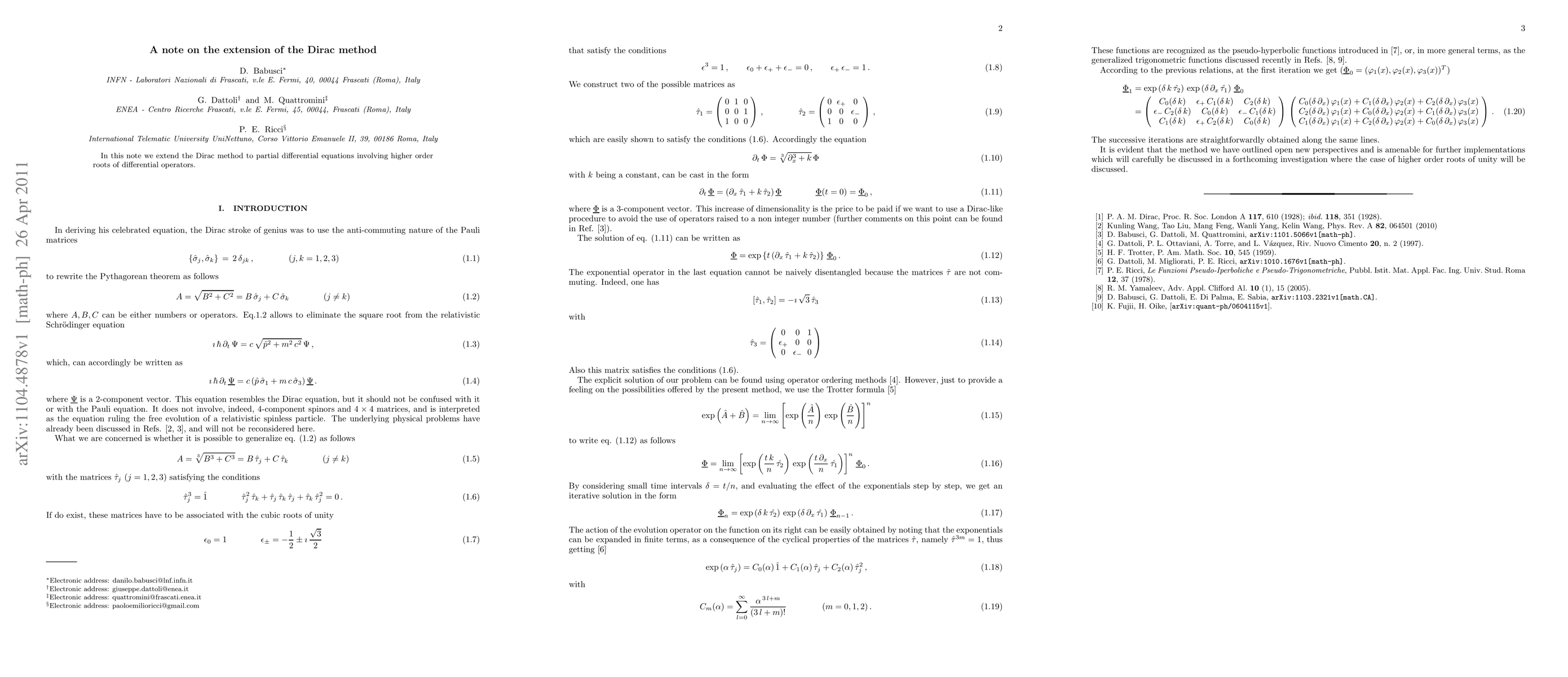 Summary: This paper extends the Dirac method to handle partial differential equations with higher-order roots of differential operators, broadening its applicability and utility in complex mathematical modeling.