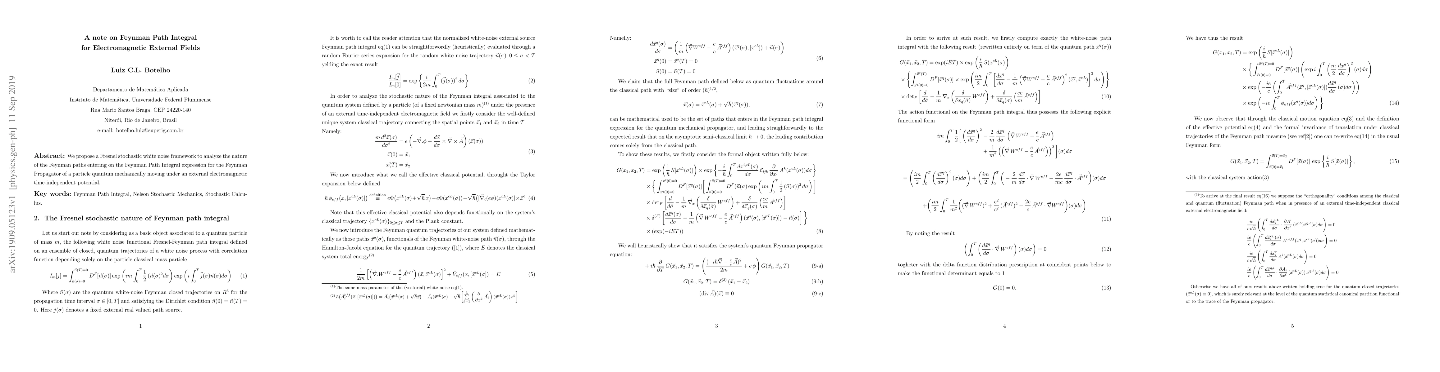Summary: This paper introduces a Fresnel stochastic white noise framework for analyzing Feynman paths in the context of quantum mechanics, specifically for particles under external electromagnetic potentials, aiming to better understand the Feynman path integral expression.